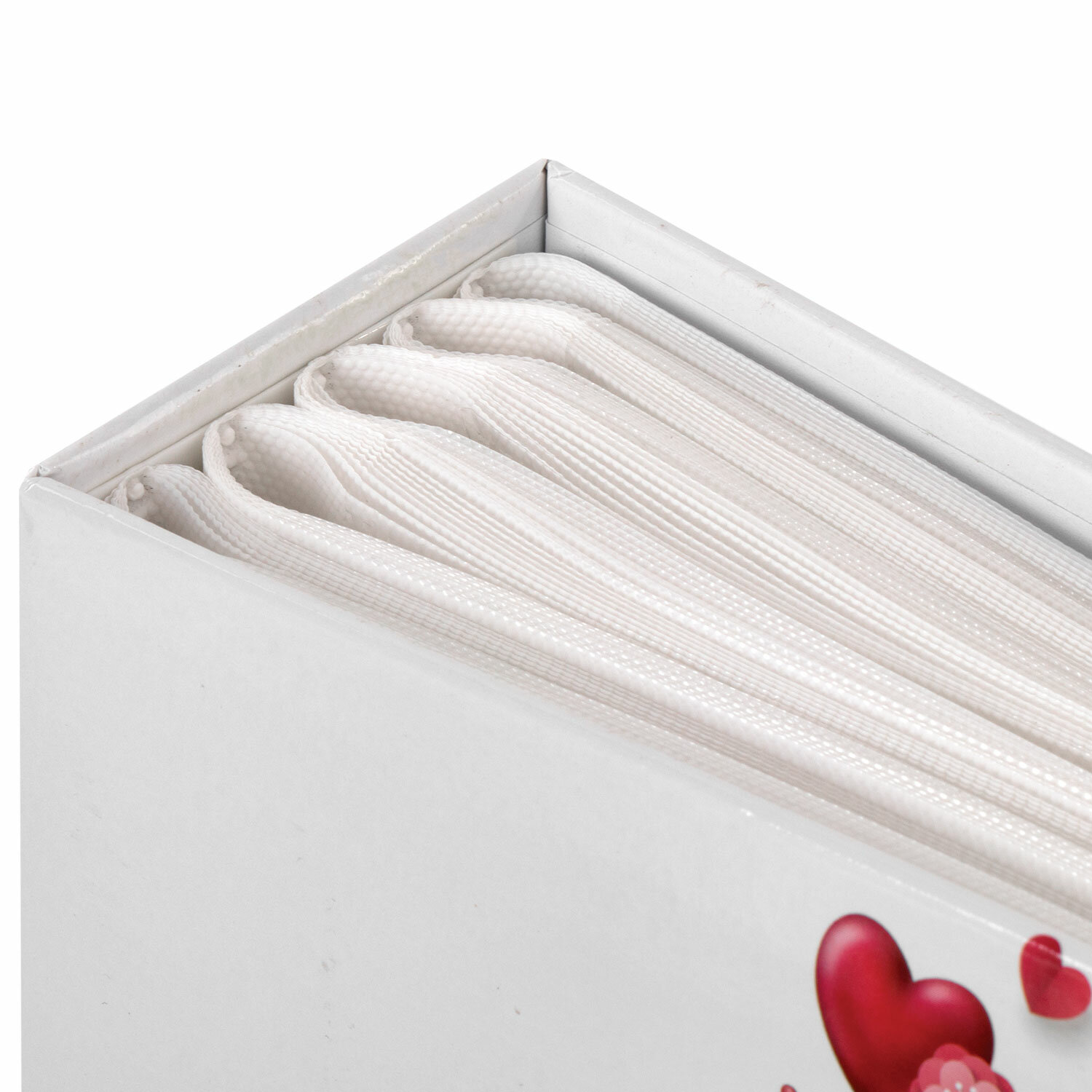Состоит из 76 полипропиленовых листов размером 17,5х22 см с карманами и вмещает 304 фотографии размером 10х15 см по 2 штуки на странице. Обложка фотоальбома выполнена в белых и красных тонах с изображением сердец и звезд, а его листы склеены в единый блок. Размер - 18х23 см. Упакован в термоусадку и дополнительно в воздушно-пузырчатый пакет, который защитит фотоальбом от любых повреждений во время транспортировки. Фотоальбом BRAUBERG "Любовные истории" на 304 фото 10х15см, твердая обложка, термосклейка, 391159