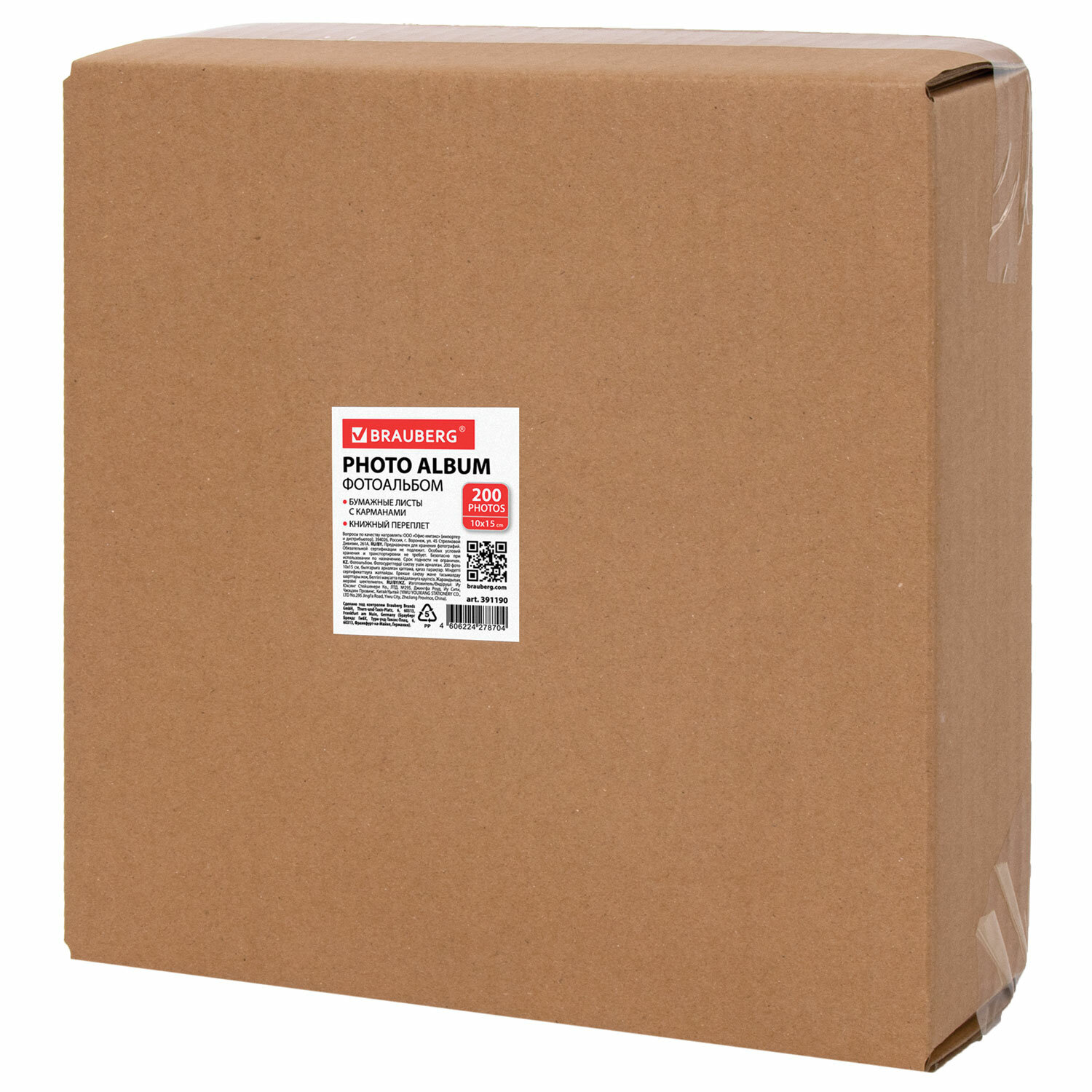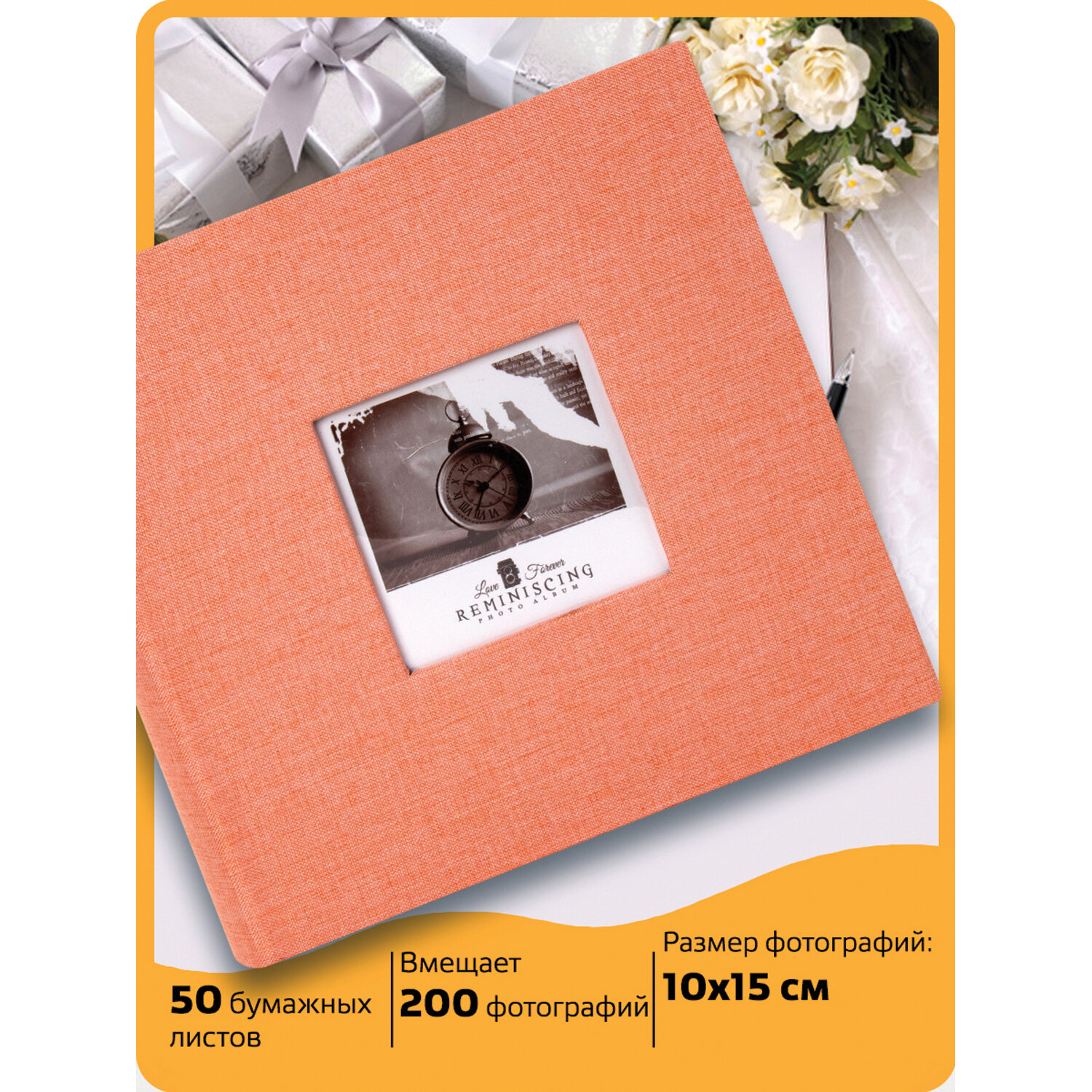 - Фотоальбом BRAUBERG "Персик" на 200 фото 10х15 см, ткань, персиковый, 391190