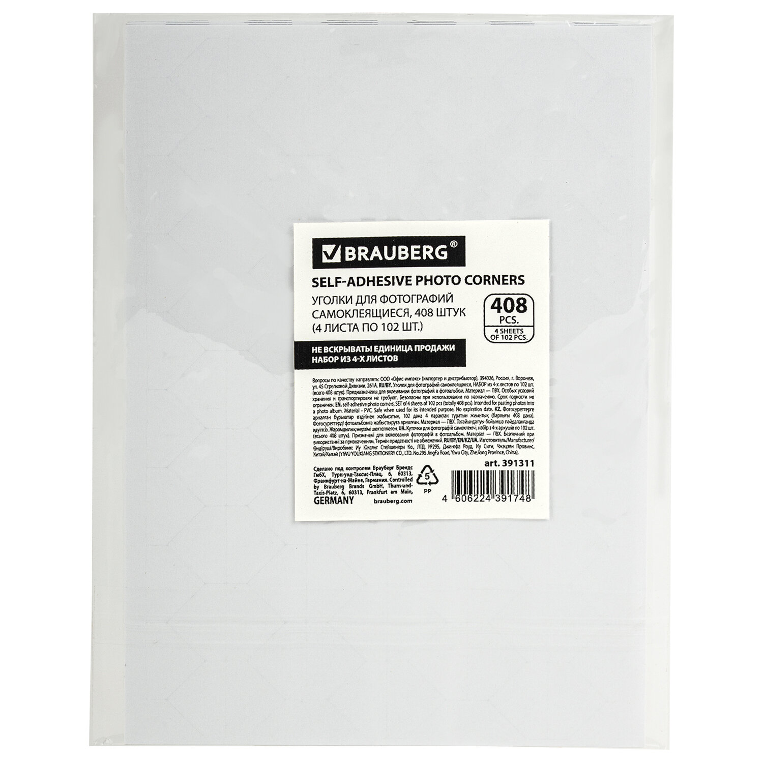 - Уголки для фотографий САМОКЛЕЯЩИЕСЯ, 408 шт., 4 л. в наборе, BRAUBERG, 391311