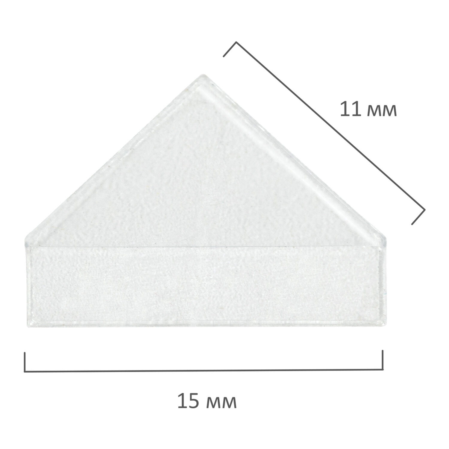 Уголки для фотографий самоклеящиеся представляют собой треугольник из ПВХ материала прозрачного цвета, толщина которого составляет 0,31 мм, размер 1x1 см.