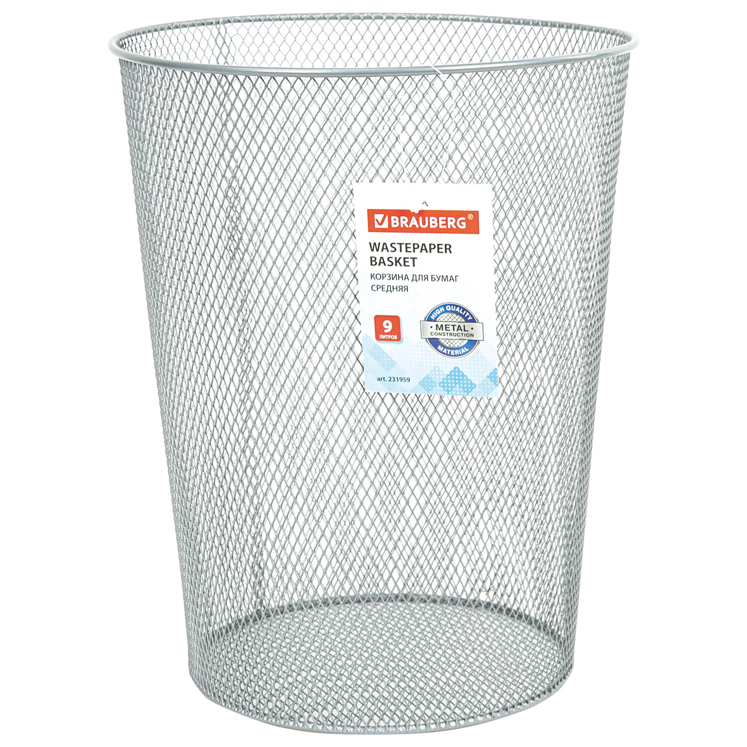 - Корзина для бумаг, 9 л, металлическая, серебристая, BRAUBERG "Germanium", 231959