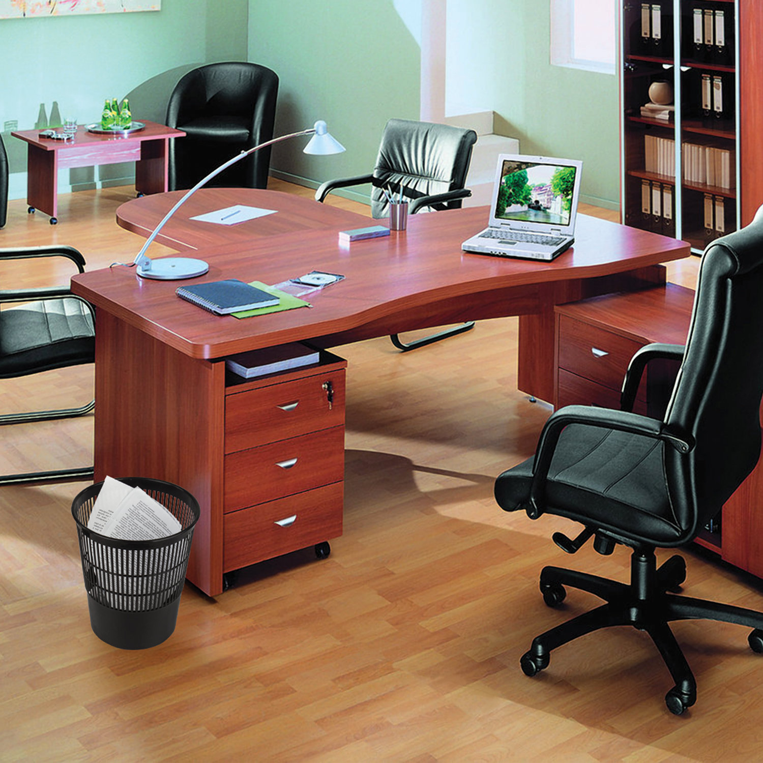 Изготовлена из высококачественного пластика черного цвета. Корпус расширяется к верху: диаметр основания составляет 19 см, а диаметр верхней части – 26,5 см. Высота – 25,5 см. Легкость и компактность корзины позволяют перемещать ее с одного места на другое. Небольшая корзина легко помещается под рабочим столом. Рекомендуемый размер мешка для мусора – 32х55 см, объем – до 12 литров. Корзина для бумаг BRAUBERG сетчатая, 9 л, черная, 237001