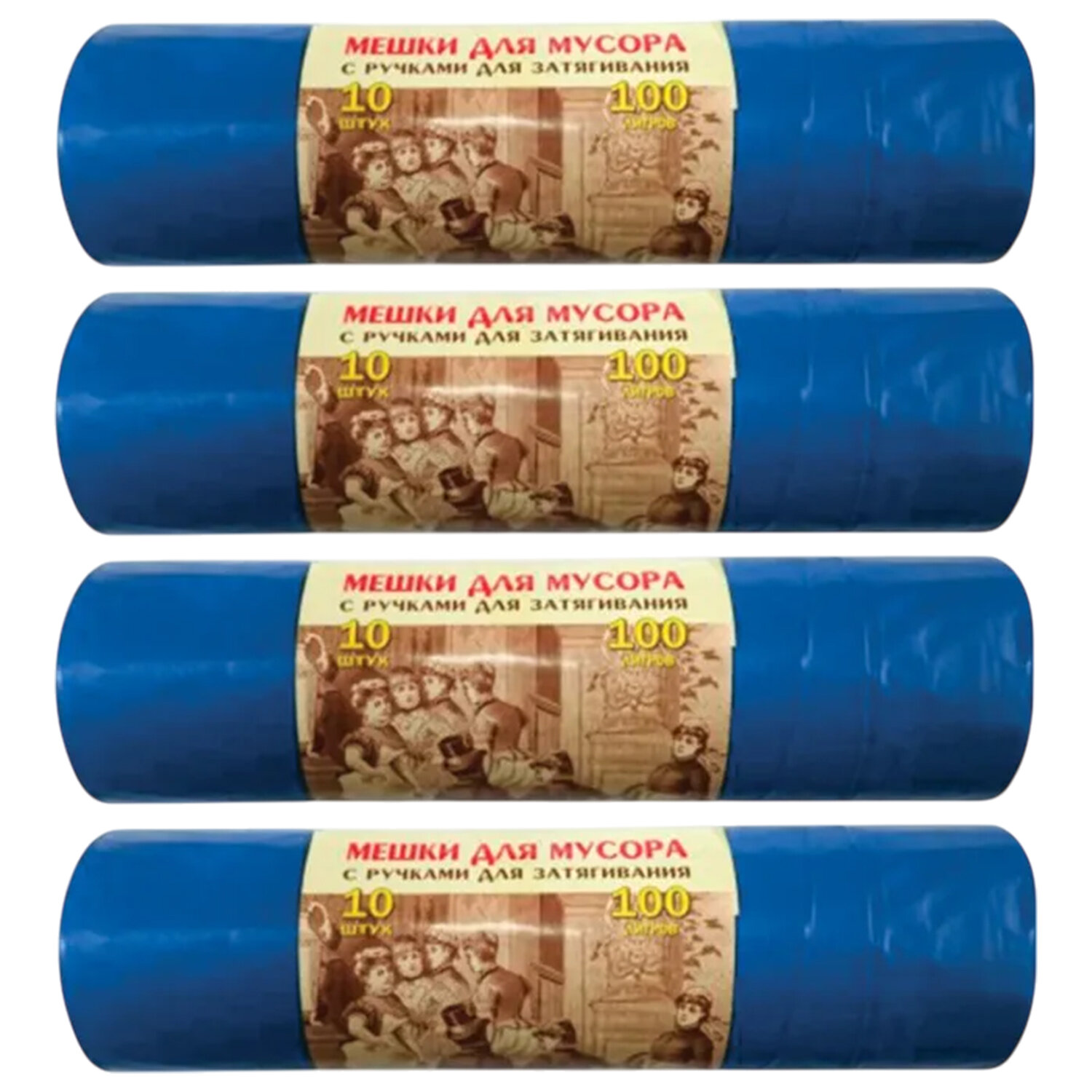 - Мешки для мусора 100 л, завязки, синие, в рулоне 10 шт., ПВД, 40 мкм, 84х67 см, КОНЦЕПЦИЯ БЫТА VITALUX, 510