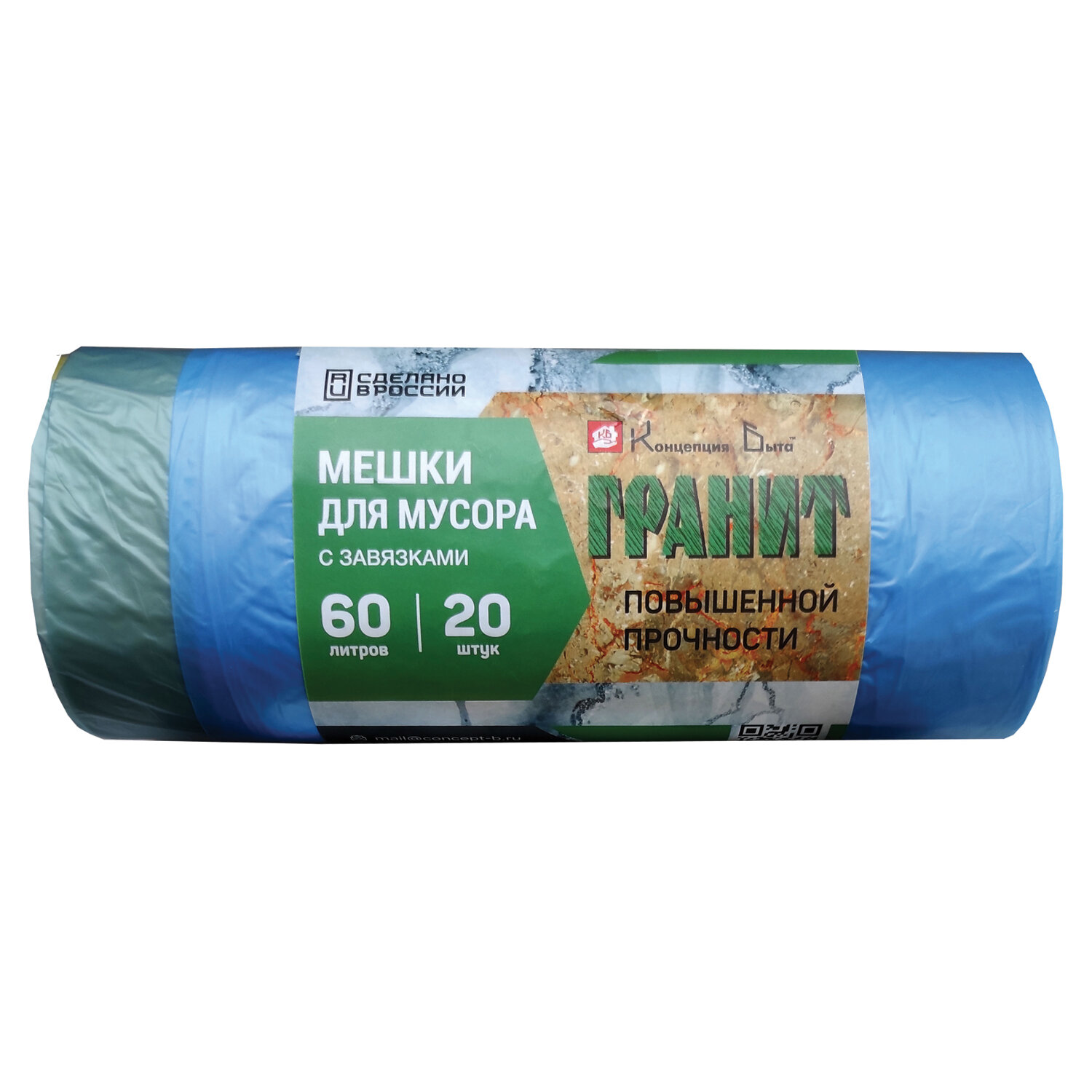 - Мешки для мусора, 60 л, завязки, синие, в рулоне 20 шт., ПНД, 15 мкм, 60х70 см, прочные, КОНЦЕПЦИЯ БЫТА "Гранит", 1022