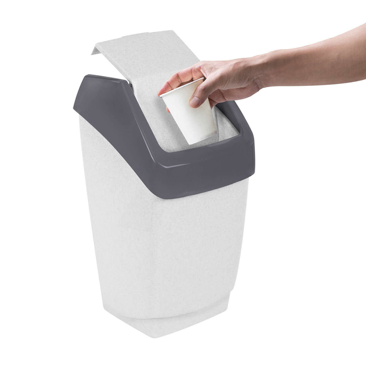 Ведро-контейнер пластиковое с плавающей крышкой. Низкая цена, европейский дизайн, качественный пластик - выгодно отличает данные изделия от импортных аналогов. Ведро мусорное с КРЫШКОЙ (качающейся) 25 литров,"ХАПС", 55х30х28 см, серое, IDEA, М 2472