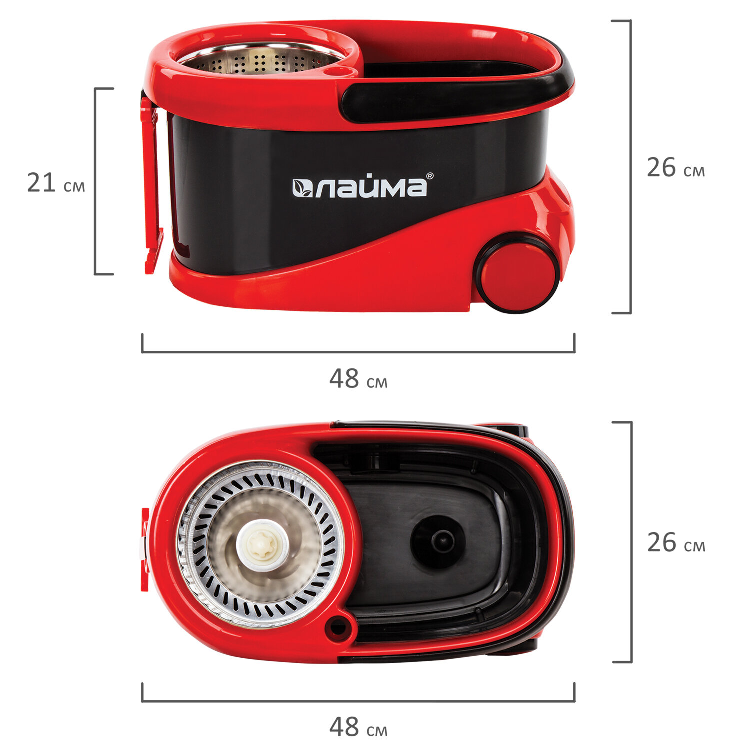 - Комплект для уборки: швабра, ведро 19 л/9 л с отжимом центрифуга, 2 круглые насадки, LAIMA, 606303, M029B