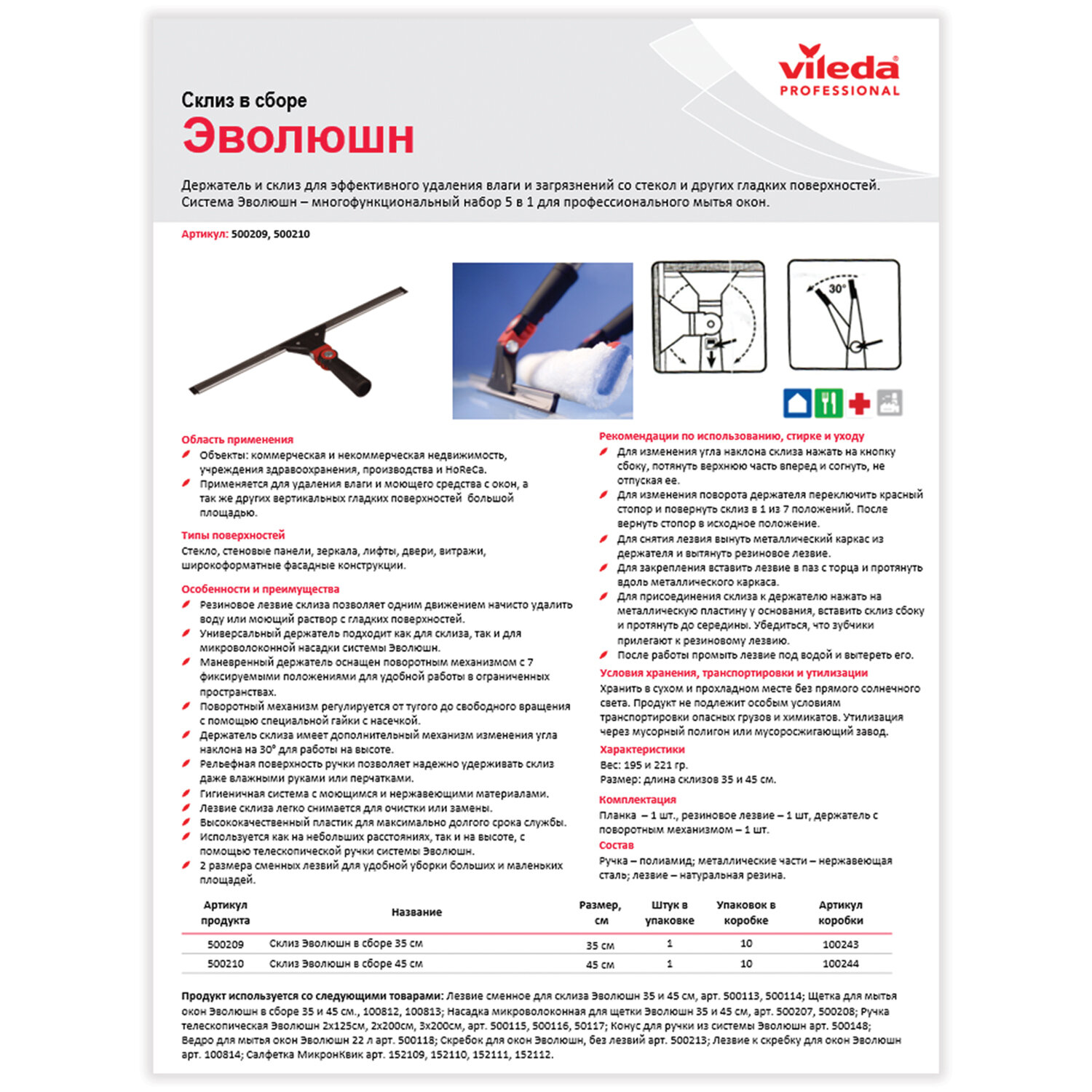 - высококачественный пластик для максимально долгого срока службы. Стяжка для удаления жидкости со стекол VILEDA "Эволюшн", в сборе, ширина 35 см (черенок-ручка 602105), 500209