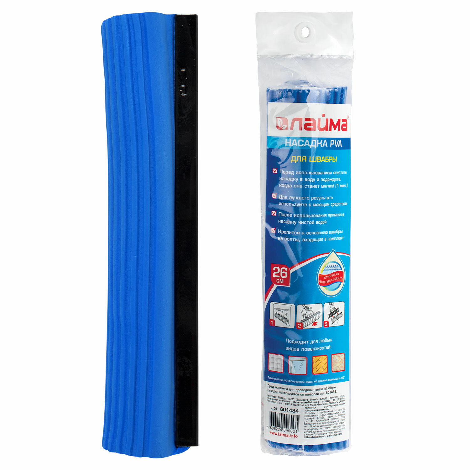 - Насадка МОП для швабры самоотжимной роликовой 601466, PVA, 26 см, синяя, LAIMA, 601484