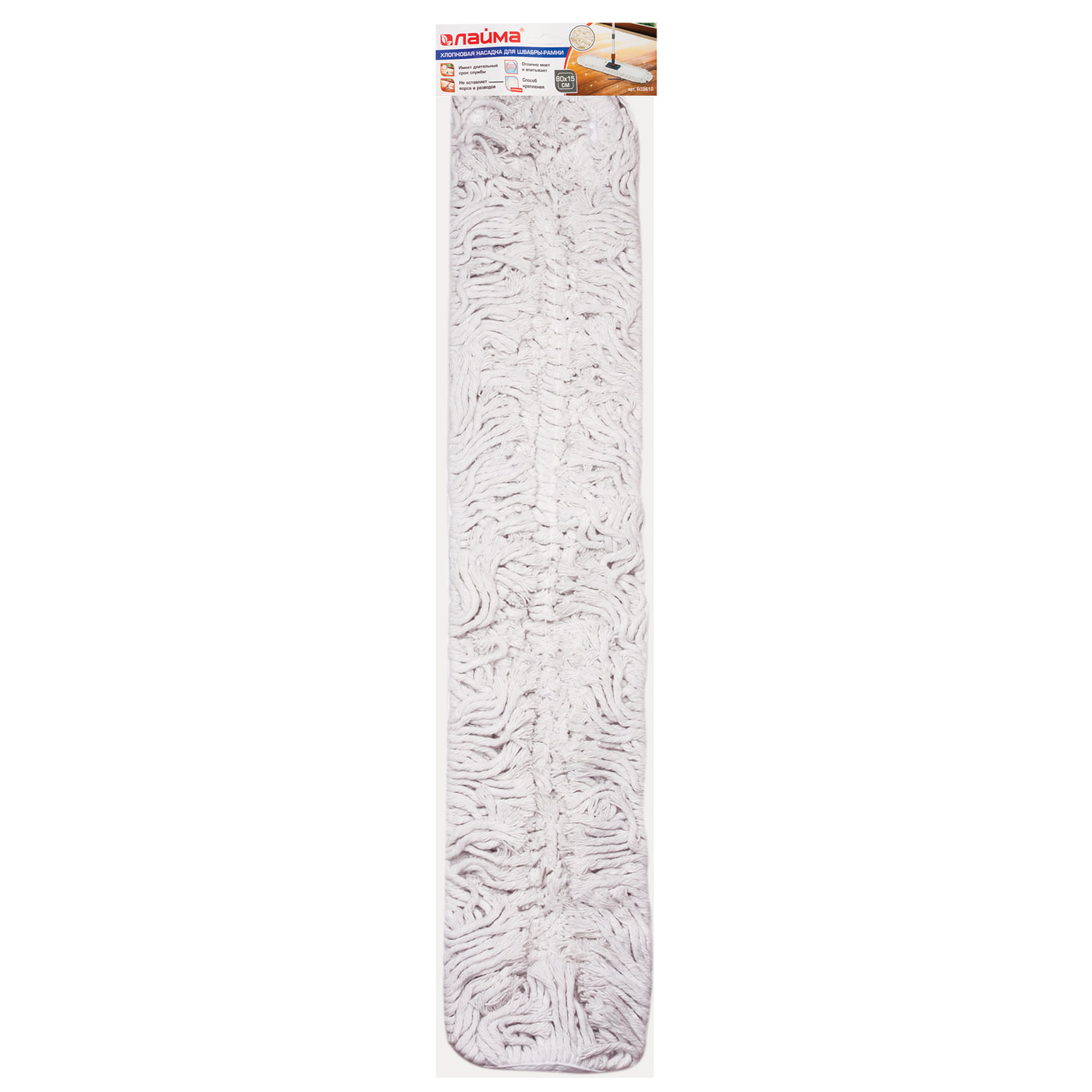 - Насадка МОП плоская 80 см для швабры-рамки, карманы, хлопок, LAIMA, 603610