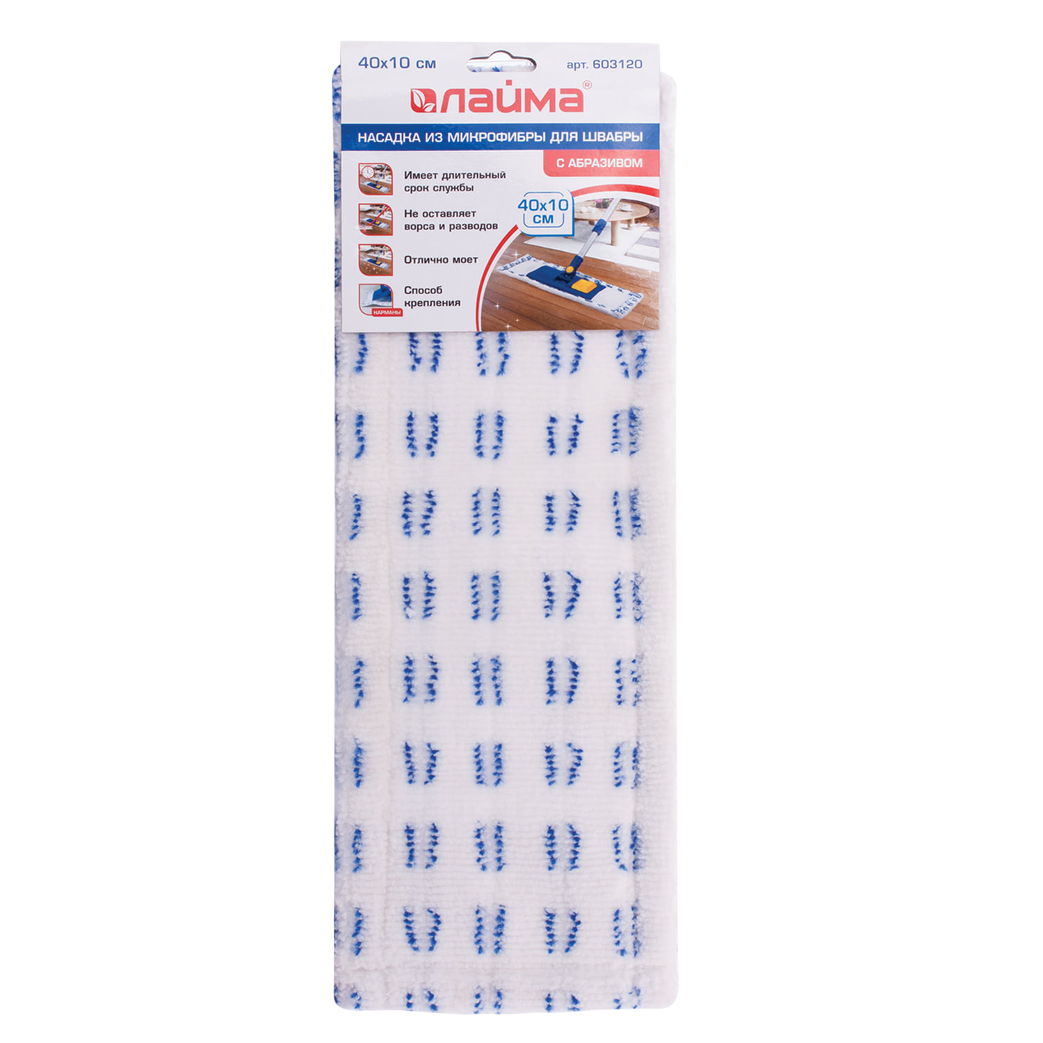 Насадка МОП плоская для швабры/держателя 40 см, карманы (ТИП К), микрофибра/абразив, LAIMA, 603120