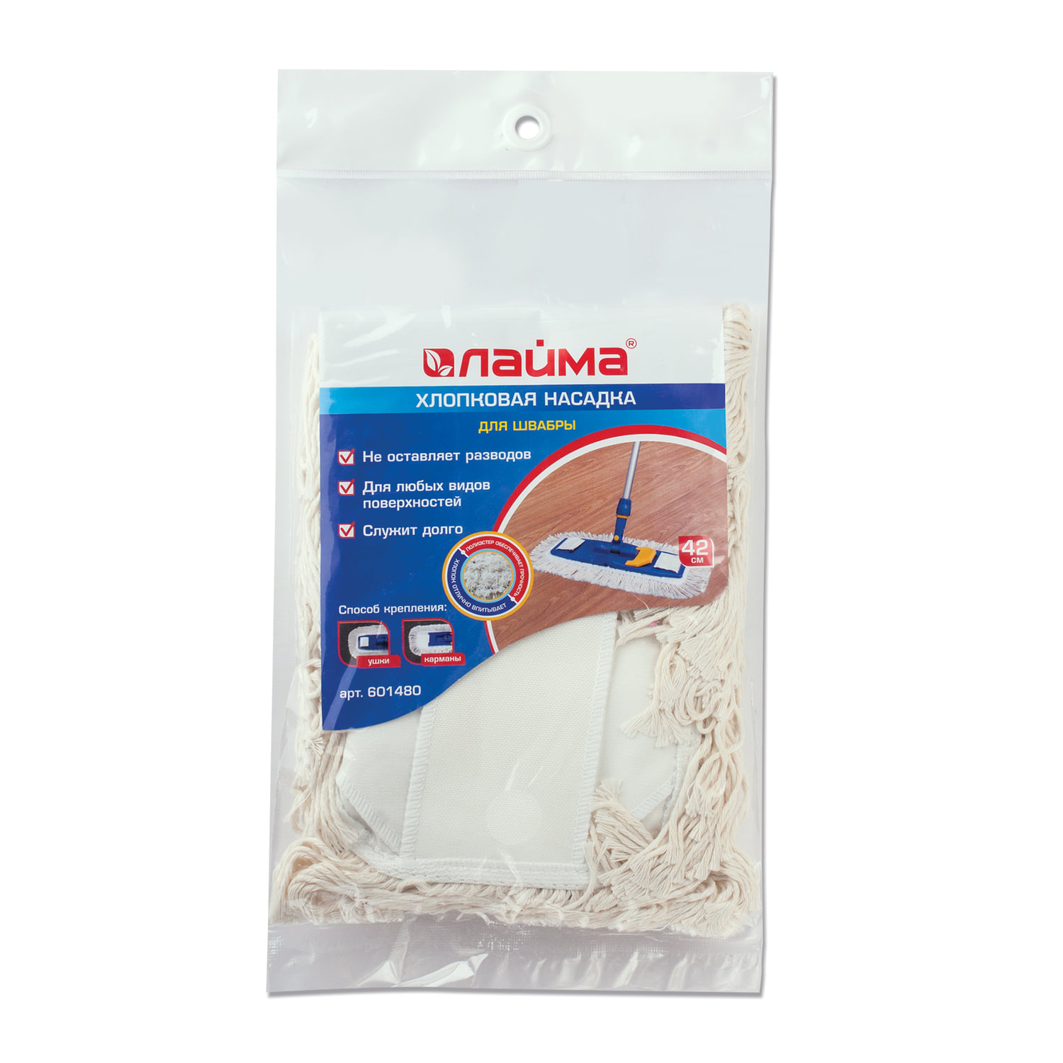 - Насадка МОП плоская для швабры/держателя 42 см, уши/карманы (ТИП У/К), хлопок 4,5 см, упаковка, LAIMA, 601480