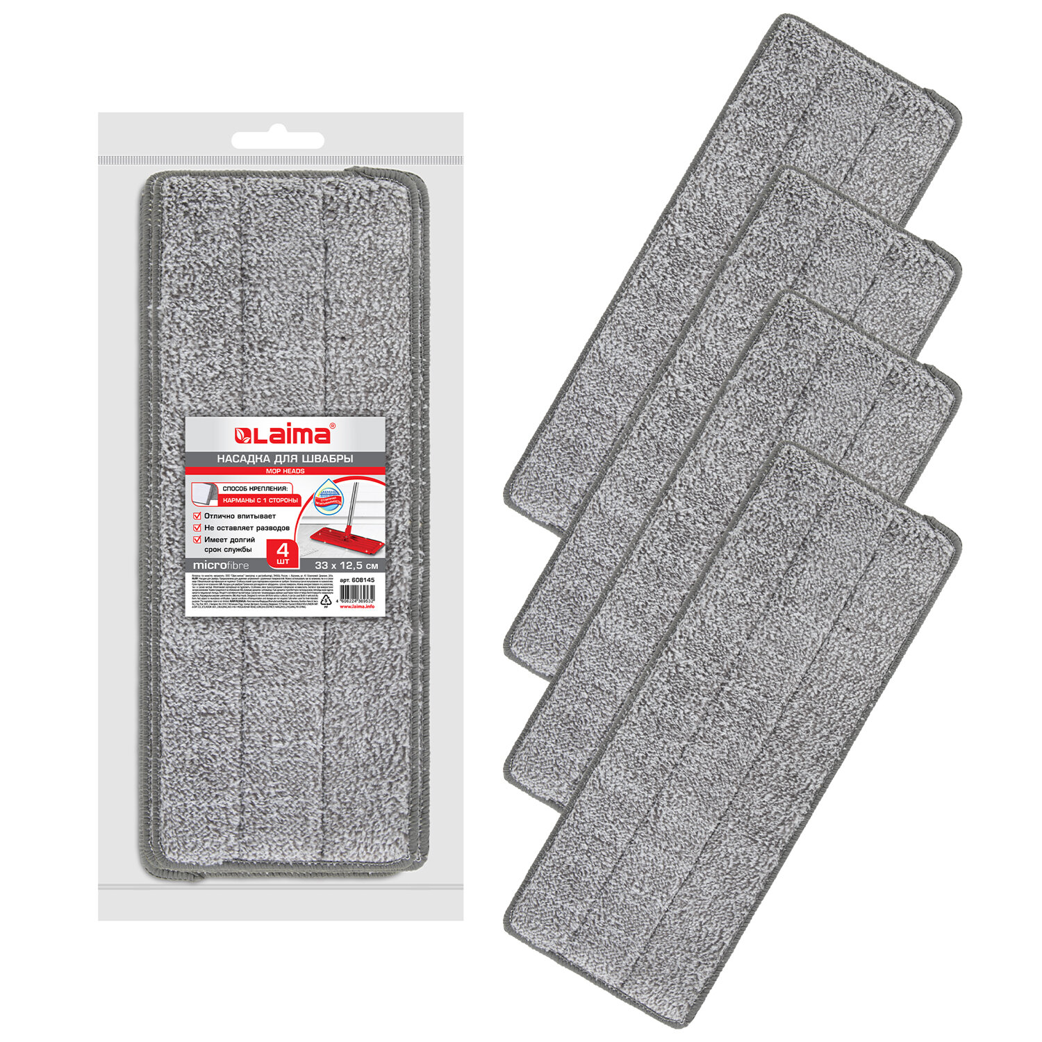 - Насадки МОП для швабры (кармашки с 1-й стороны) КОМПЛЕКТ 4 шт., микрофибра, 33х12,5 см, LAIMA, 608145