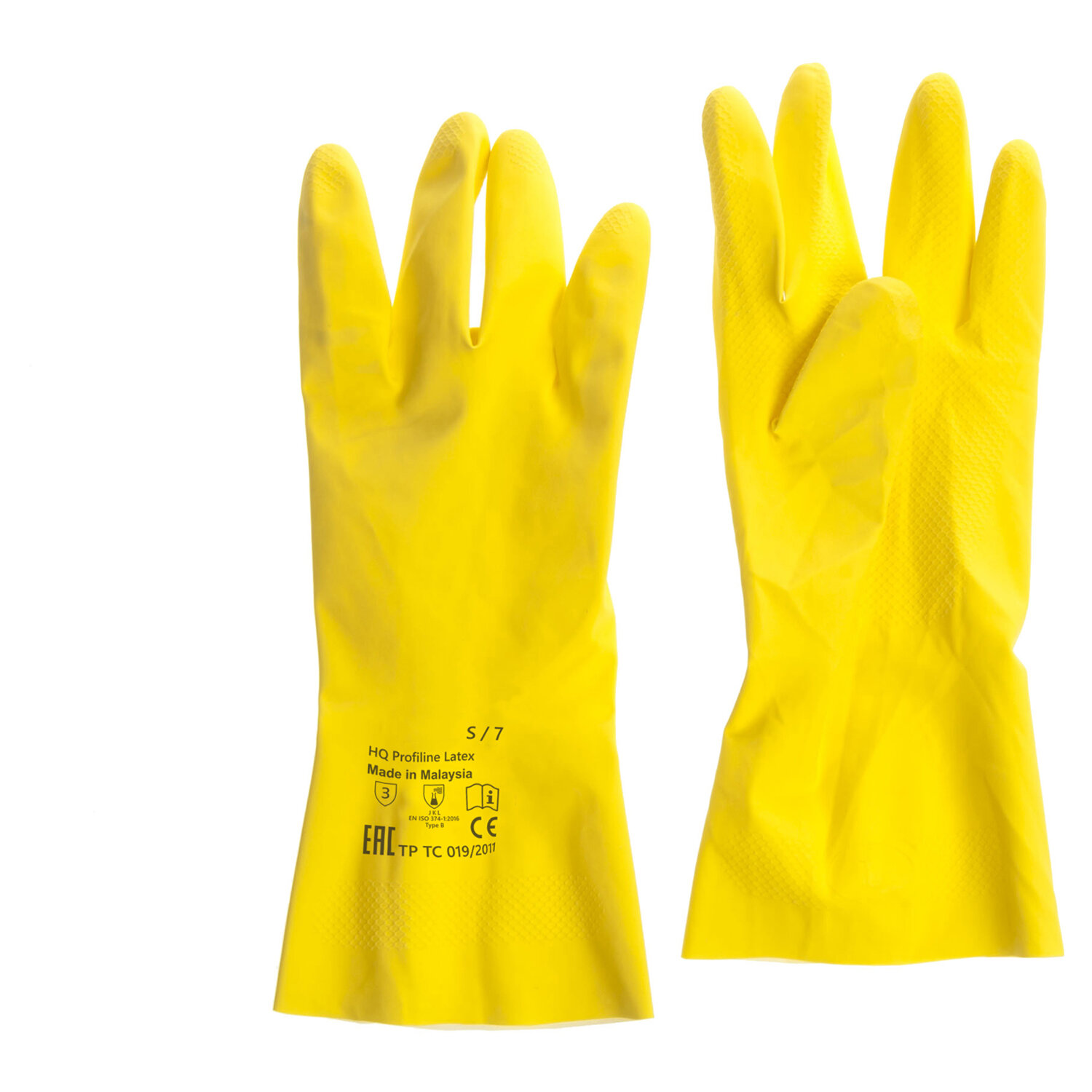 Перчатки латексные КЩС, сверхпрочные, плотные, хлопковое напыление, размер 7 S, малый, желтые, HQ Profiline, 73581