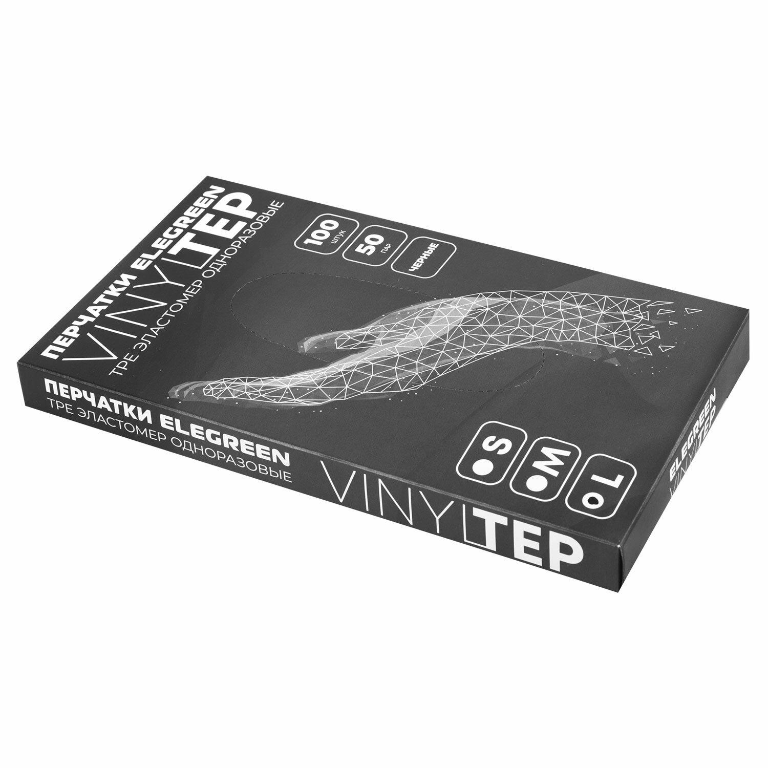 - Перчатки одноразовые эластомер TPE, КОМПЛЕКТ 50 пар (100 шт.), L (большие), черные, ELEGREEN, ГППVTЭлЧ-L