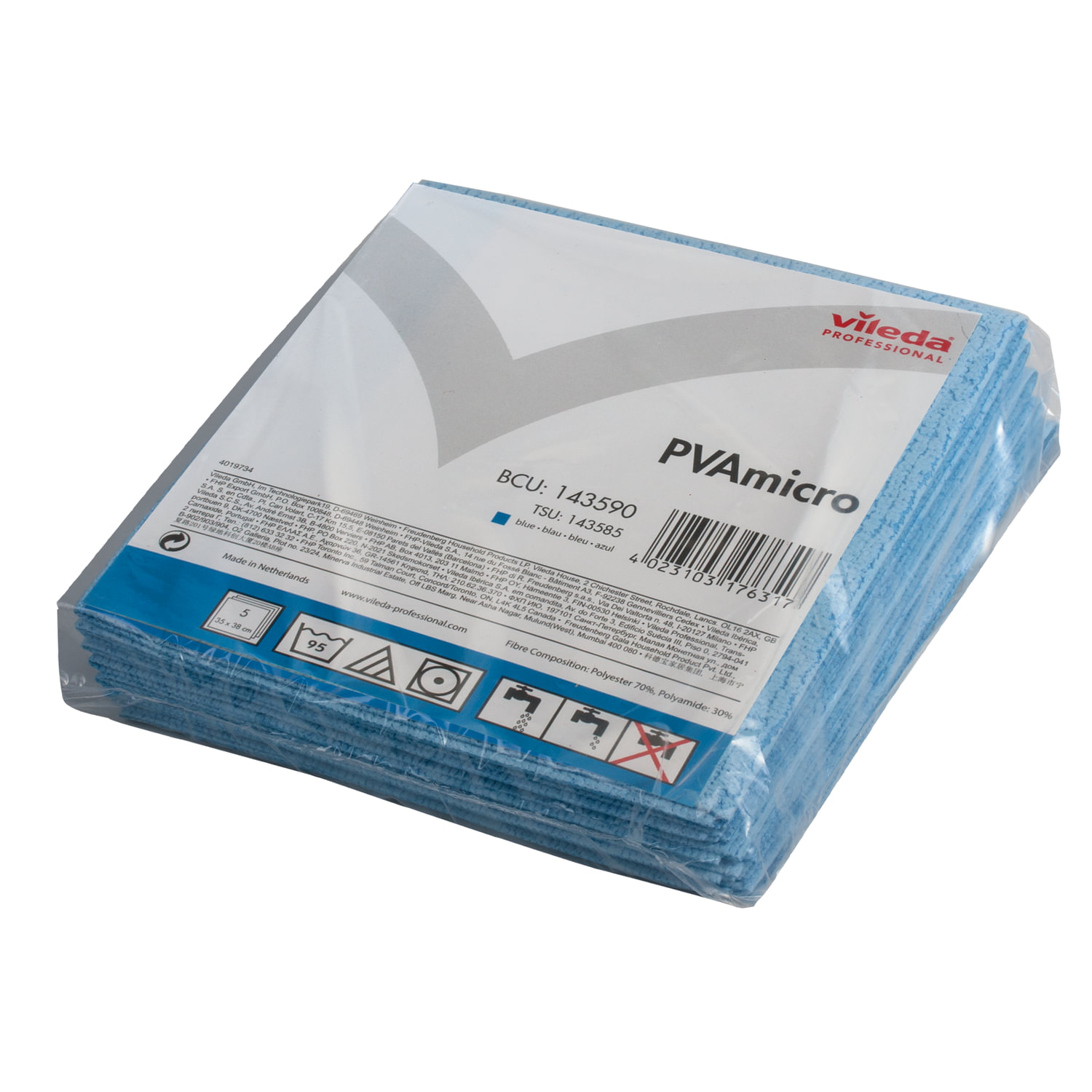 - Салфетки VILEDA "ПВАмикро", КОМПЛЕКТ 5 шт., искусственная замша, голубая, 35х38 см, 143590