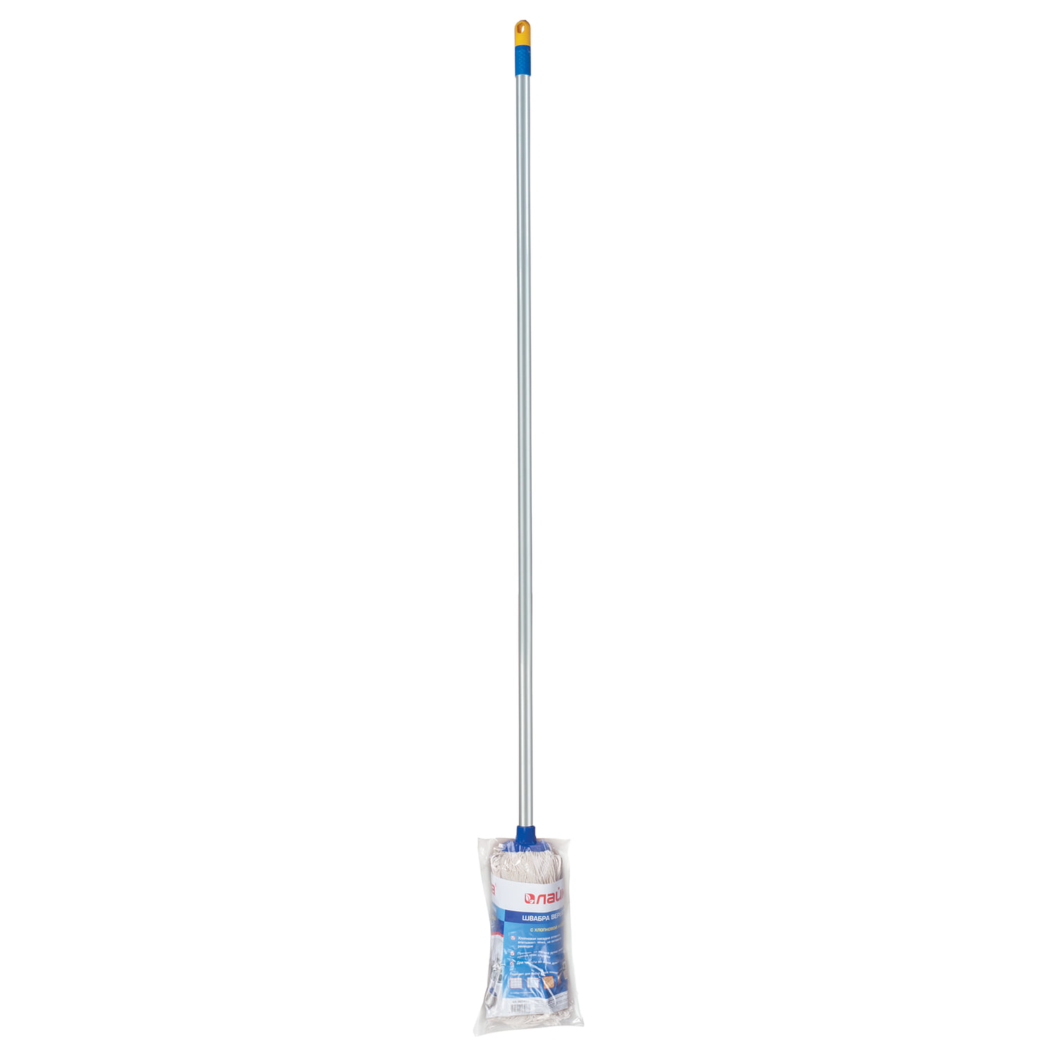 - Швабра с веревочной насадкой, черенок 120 см, еврорезьба, 165 г (хлопок), ворс 26 см, LAIMA, 601470