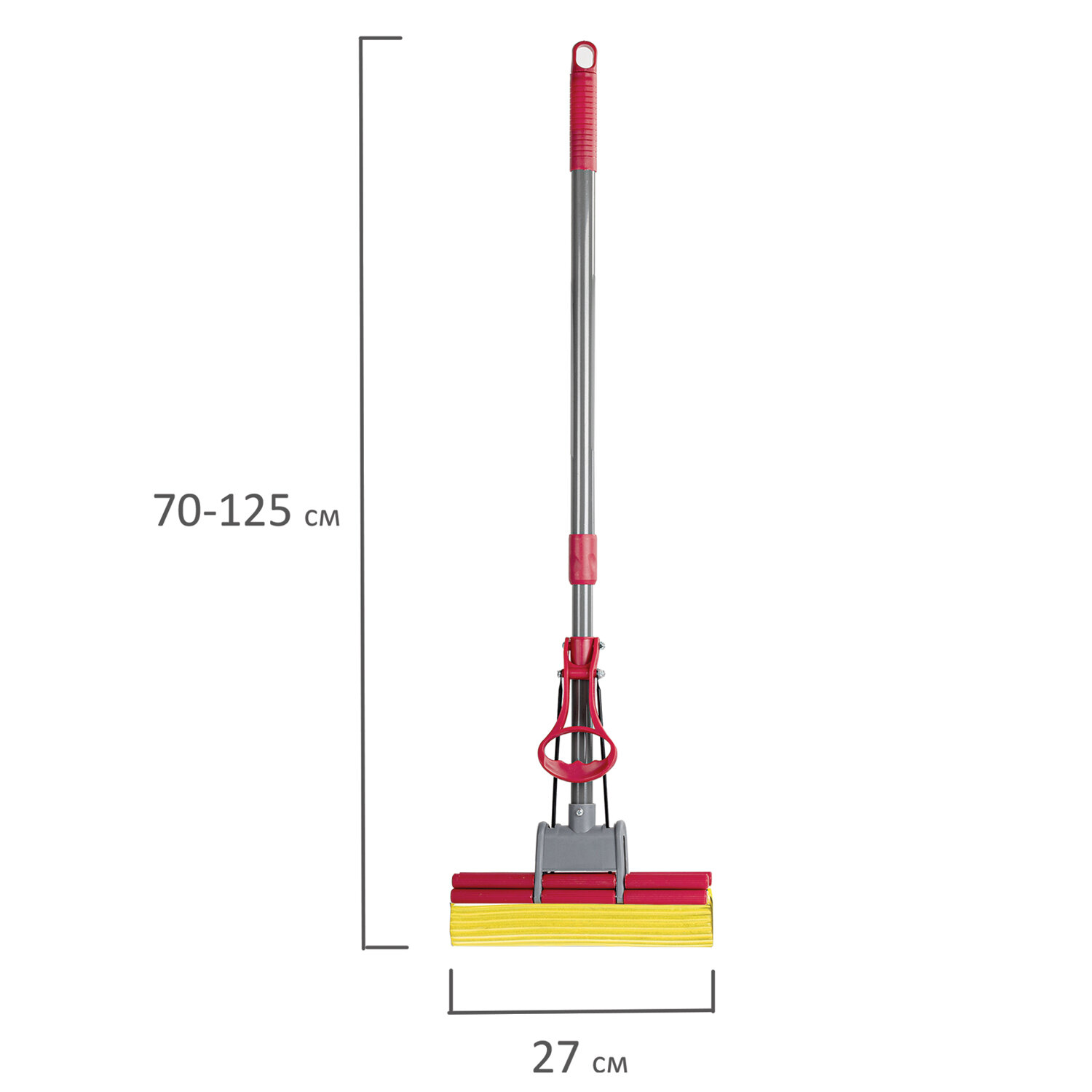 - Швабра самоотжимная, роликовый двойной отжим, насадка PVA 27 см, телескопический черенок 125 см, LAIMA, 603597