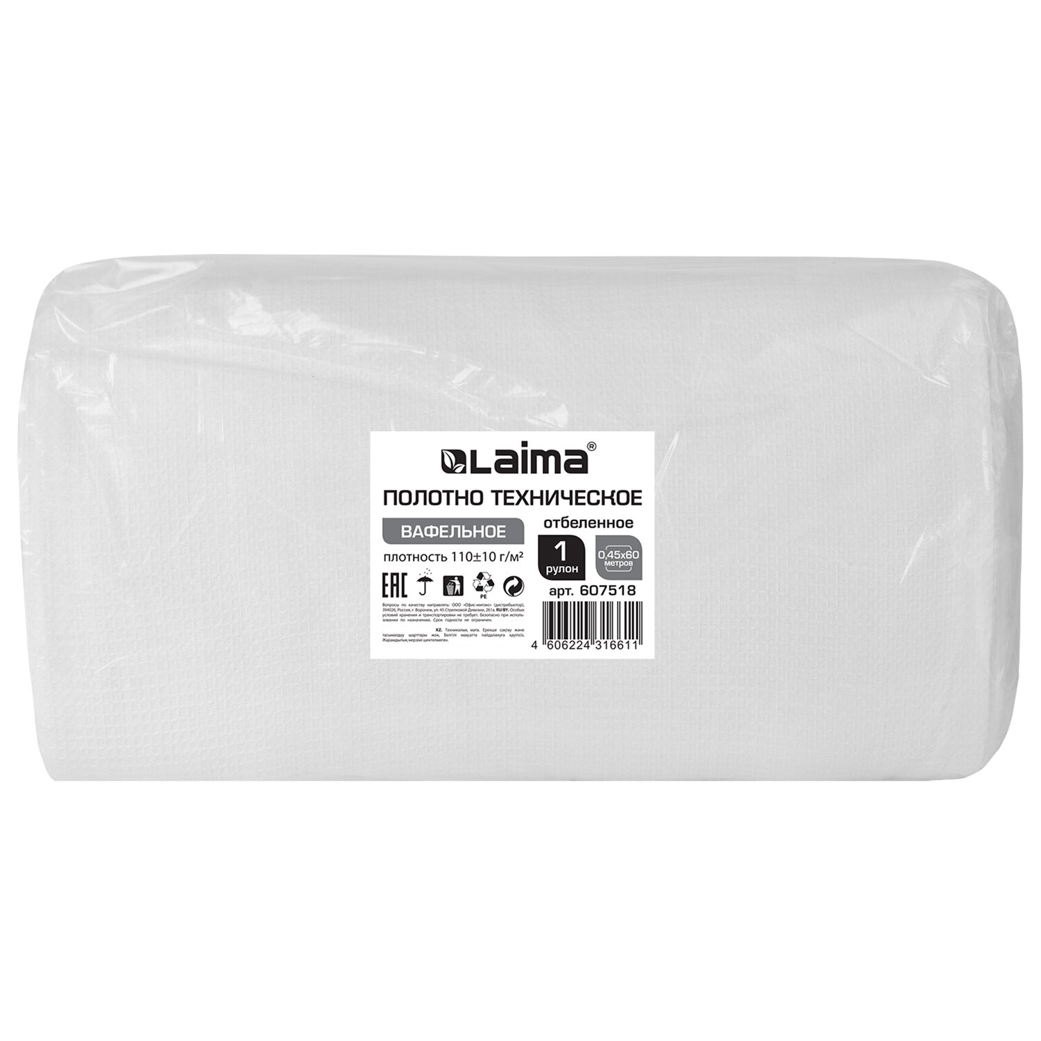 - Полотно ВАФЕЛЬНОЕ отбеленное, рулон 0,45х60 м, плотность 110 (±10) г/м2, LAIMA, 607518, ГС