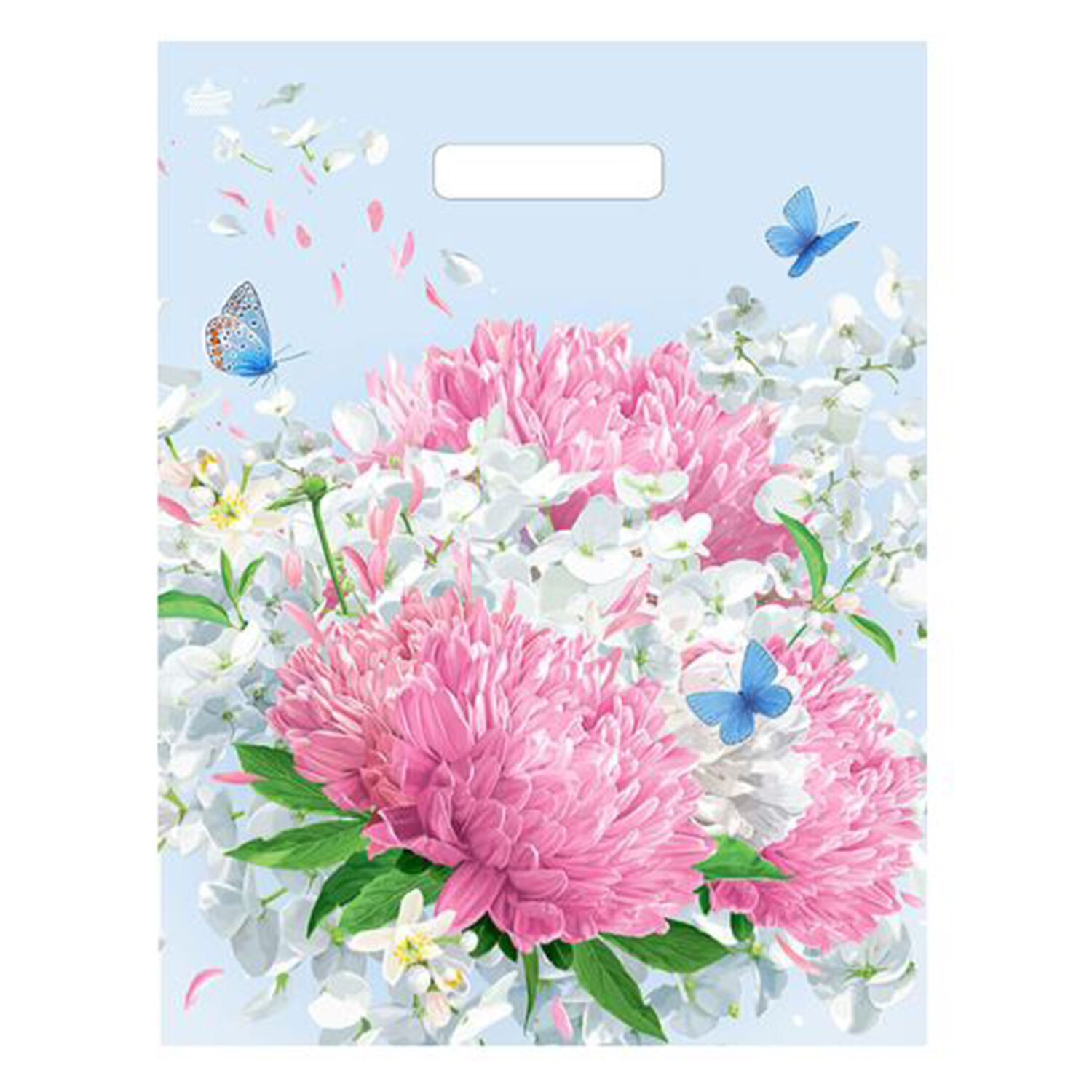 - Пакет с вырубной ручкой ПВД, 40х31 см, "Нежная хризантема", 30 мкм, н00178360