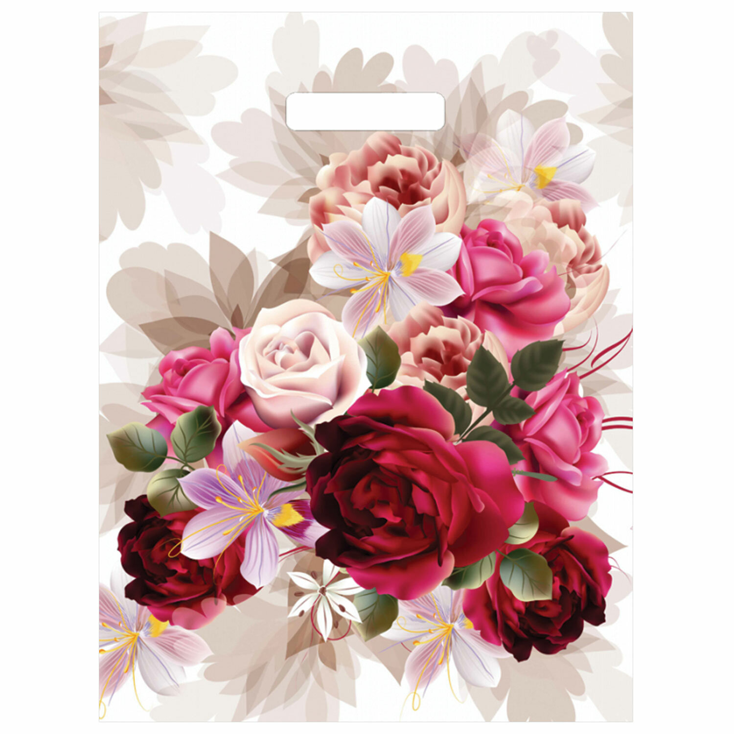 Пакет с вырубной ручкой ПВД, 40х31 см, "Пионы", 60 мкм, н00117595
