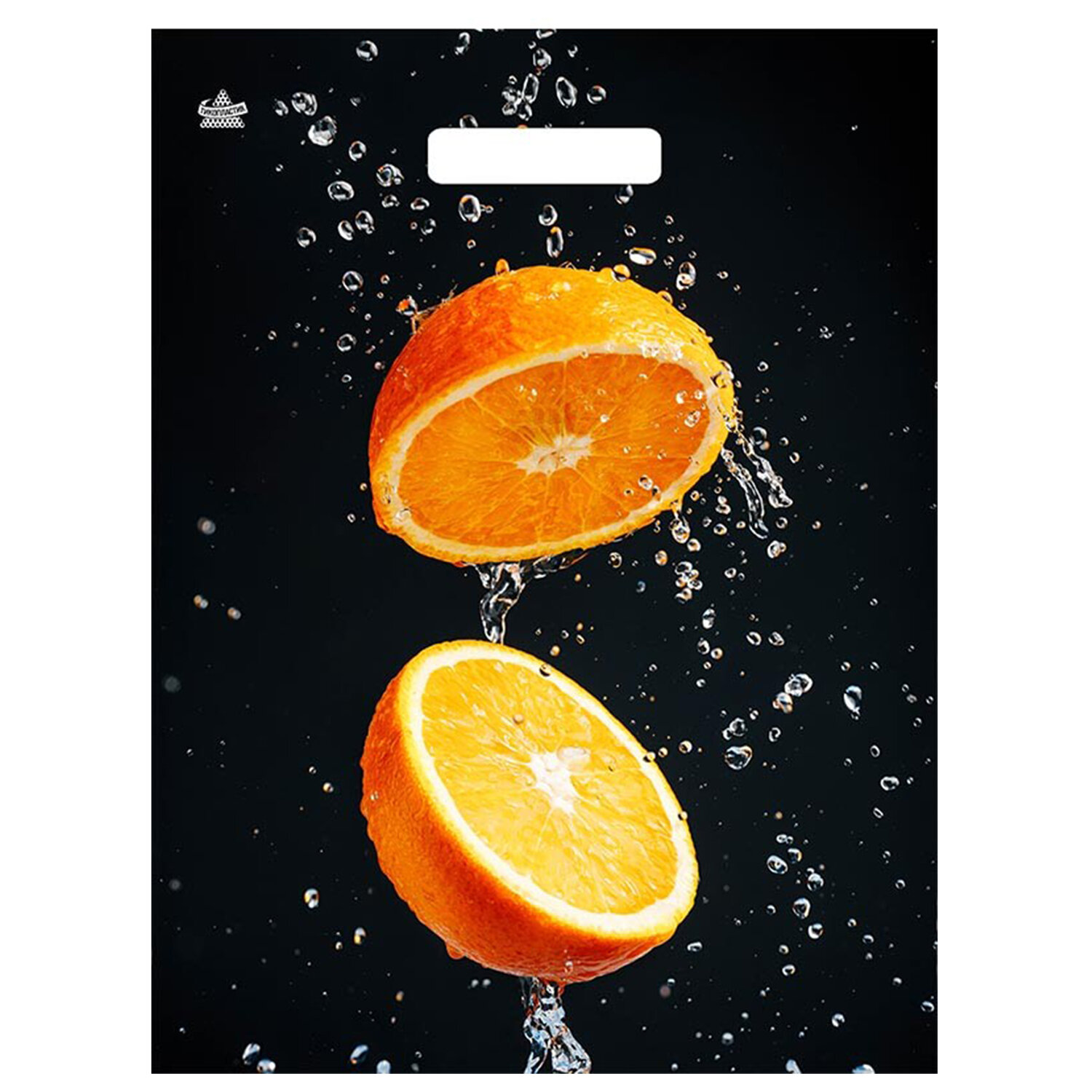 - Пакет с вырубной ручкой ПВД ламинированный, 40х31 см, "Апельсиновый взрыв", 60 мкм, н00269308