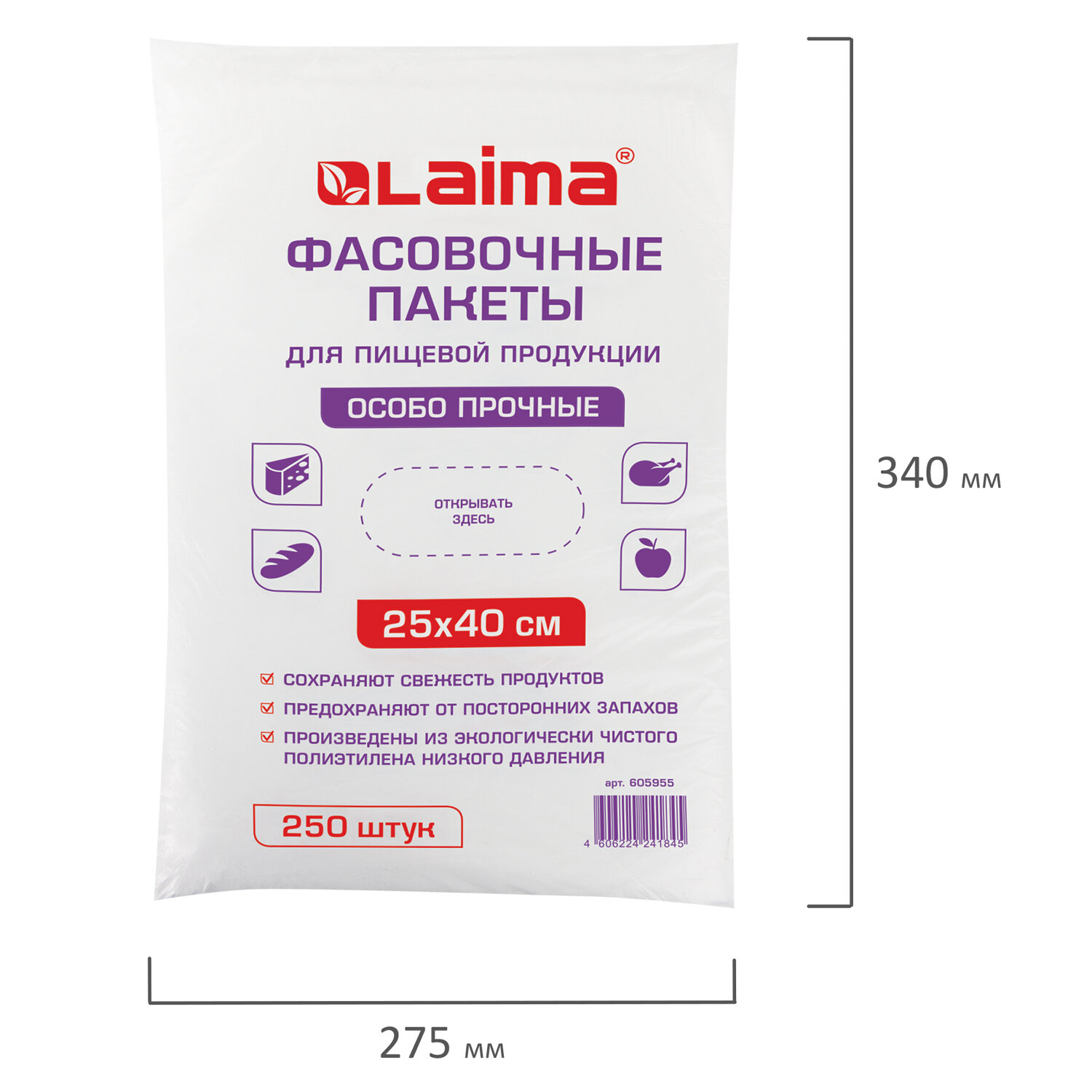 - Пакеты фасовочные 25х40 см, КОМПЛЕКТ 250 шт., ПНД, 15 мкм, ОСОБО ПРОЧНЫЕ, евроупаковка, LAIMA, 605955