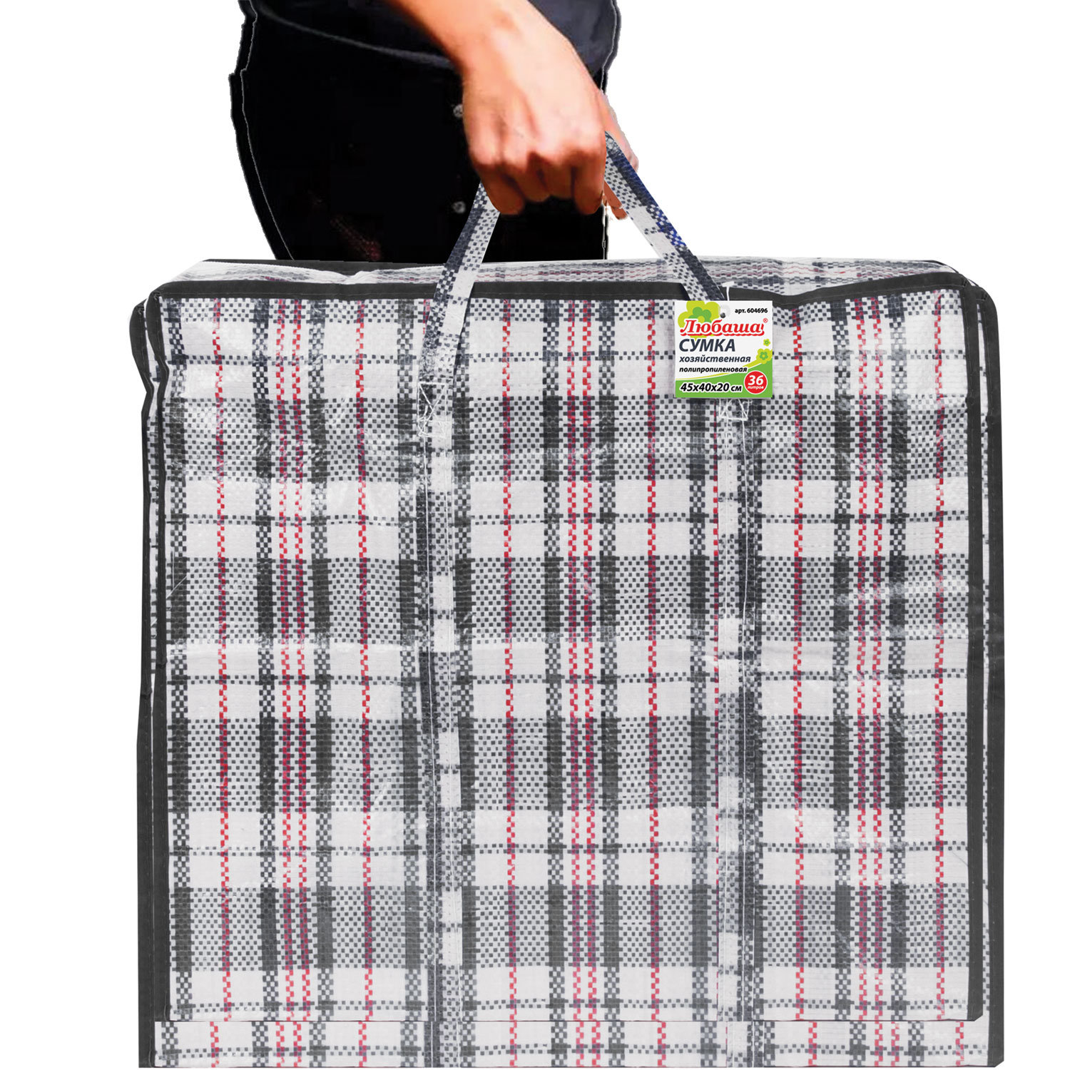 Сумка-баул хозяйственная, полипропилен, 45х40х20 см, 36 литров, черно-красная, 130 г/м2, ЛЮБАША, 604696