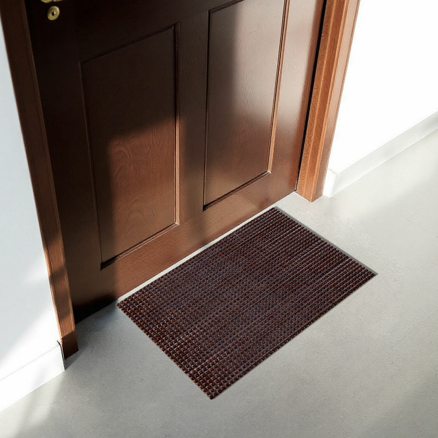 - Коврик придверный 45х60 см, ВЕНГЕ пластиковый грязезащитный толщина 10 мм, "ТРАВКА", PRIMILA, 701064