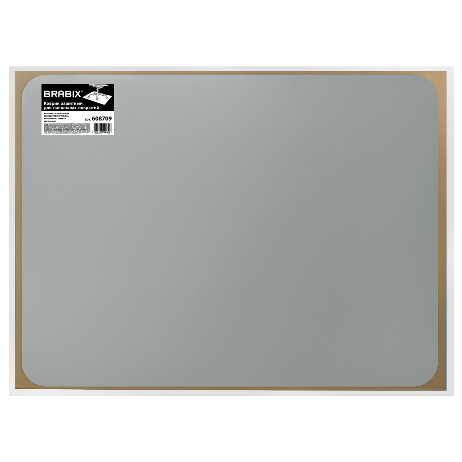 - Коврик защитный напольный BRABIX, полипропилен, 90х120 см, серый, толщина 1,2 мм, 608709, 1212091205