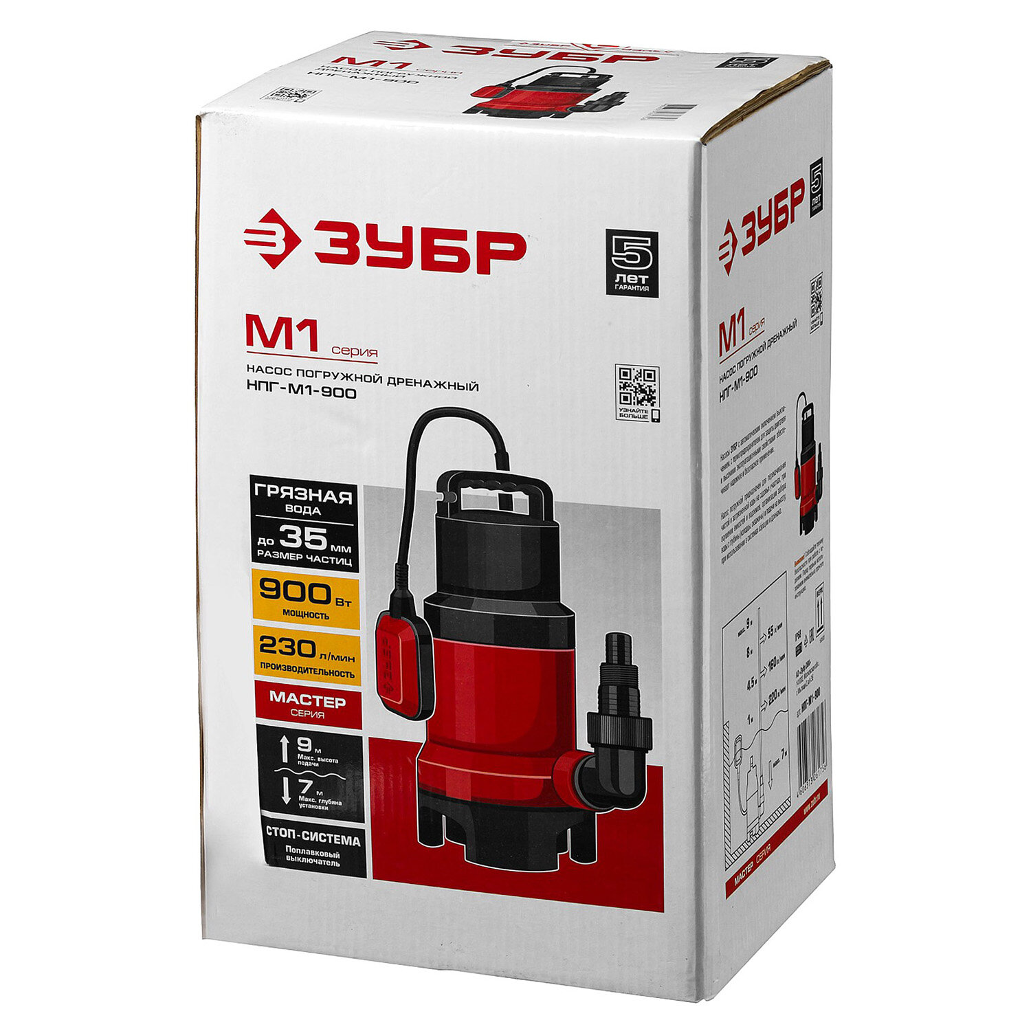 Дренажный насос для грязной воды ЗУБР НПГ-М1-900, 900 Вт, 230 л/мин, погружной, НПГ-М1-900