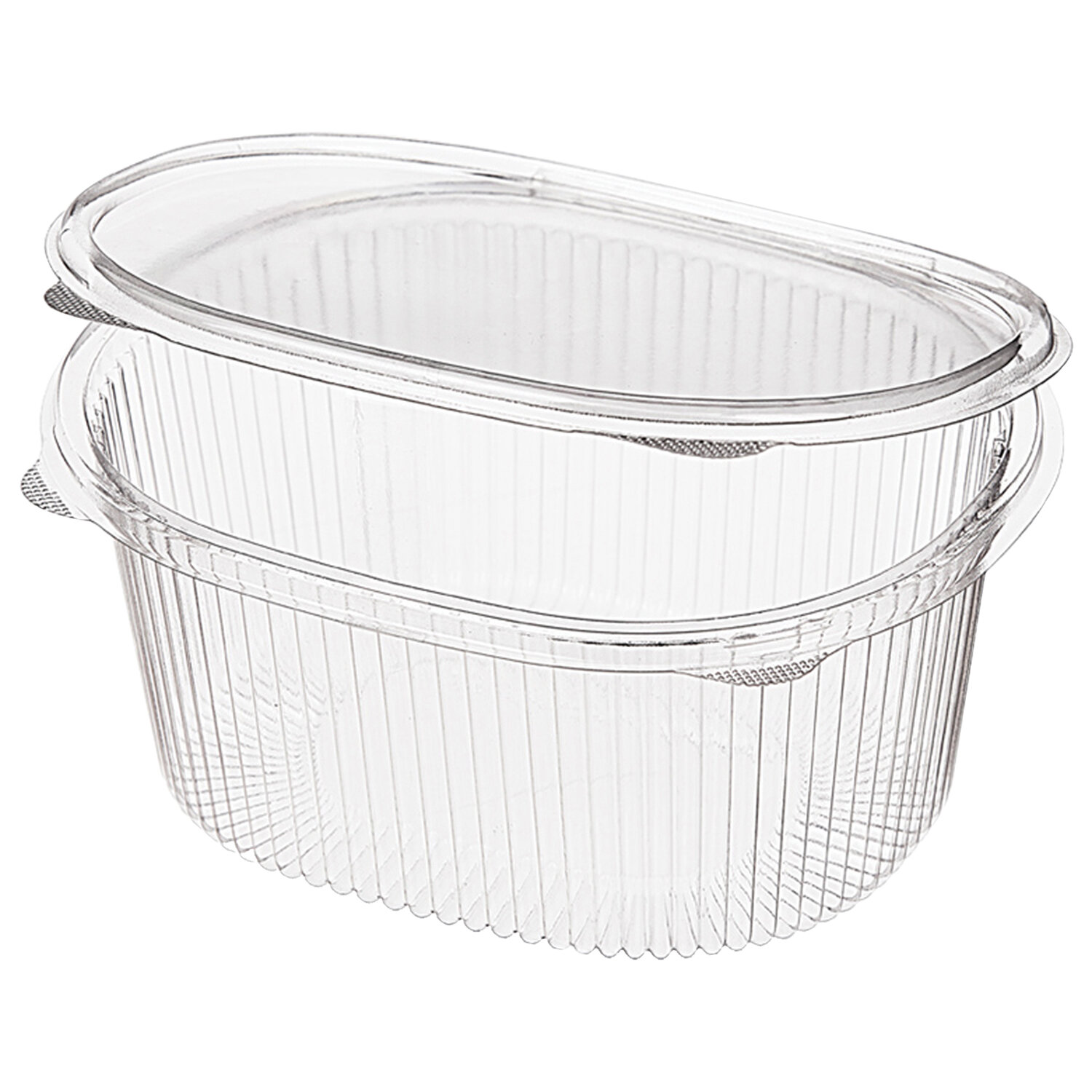 Контейнеры с рёбрами жёсткости по углам и неразъёмной крышкой. Надёжное штабелирование. Изготовлены из пищевого пластика. Крышка плотно и крепко облегает пищевой контейнер, что снижает вероятность контакта продуктов с внешней средой. Разогрев в микроволновке не допускается. Одноразовый контейнер овальный 1000 мл С КРЫШКОЙ ЮП-РКС, КОМПЛЕКТ 420 шт., прозрачный ПЭТ, ЮУПМ6006