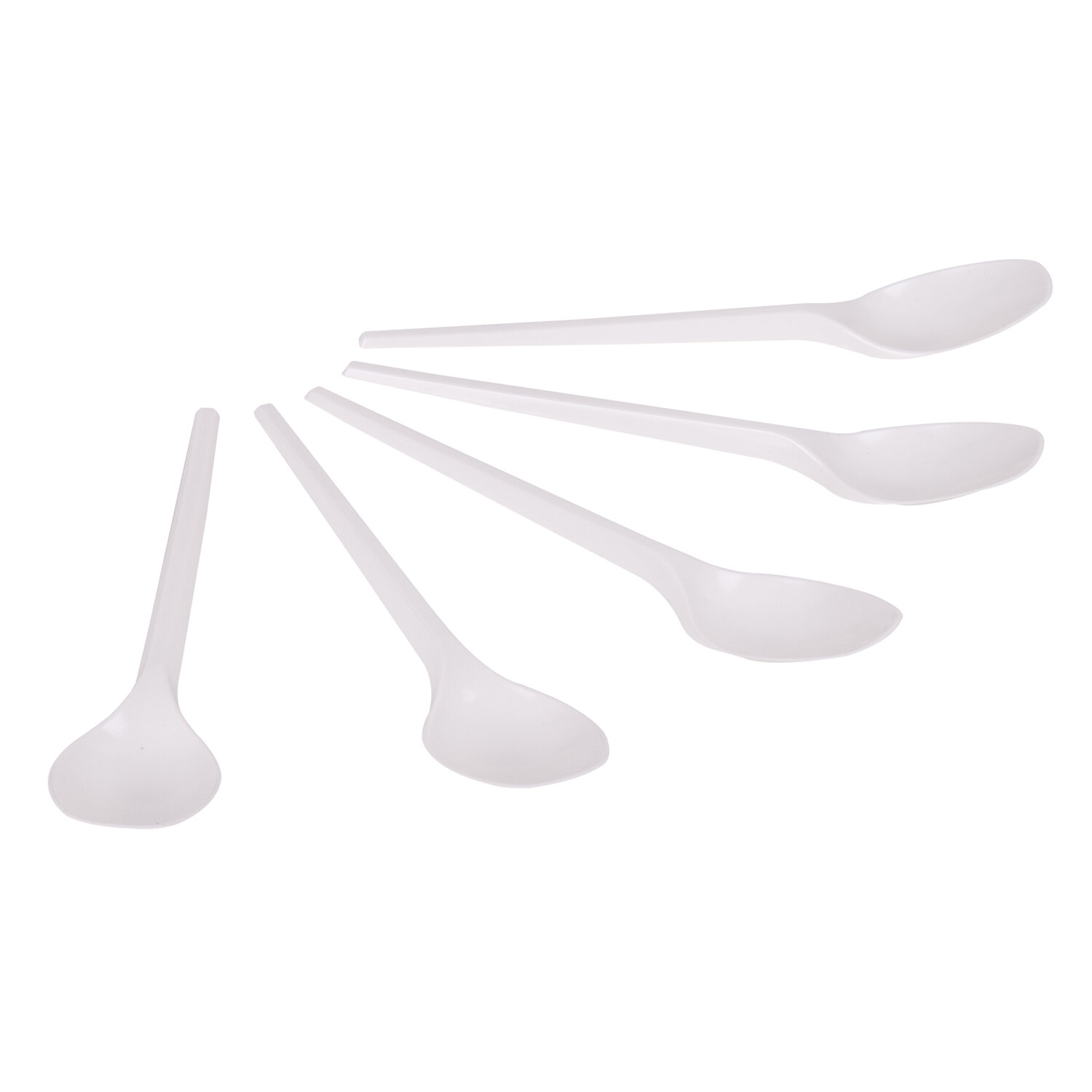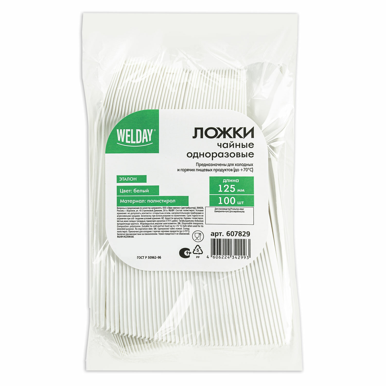 - Ложка чайная одноразовая пластиковая 125 мм, белая, КОМПЛЕКТ 100 шт., WELDAY, 607829
