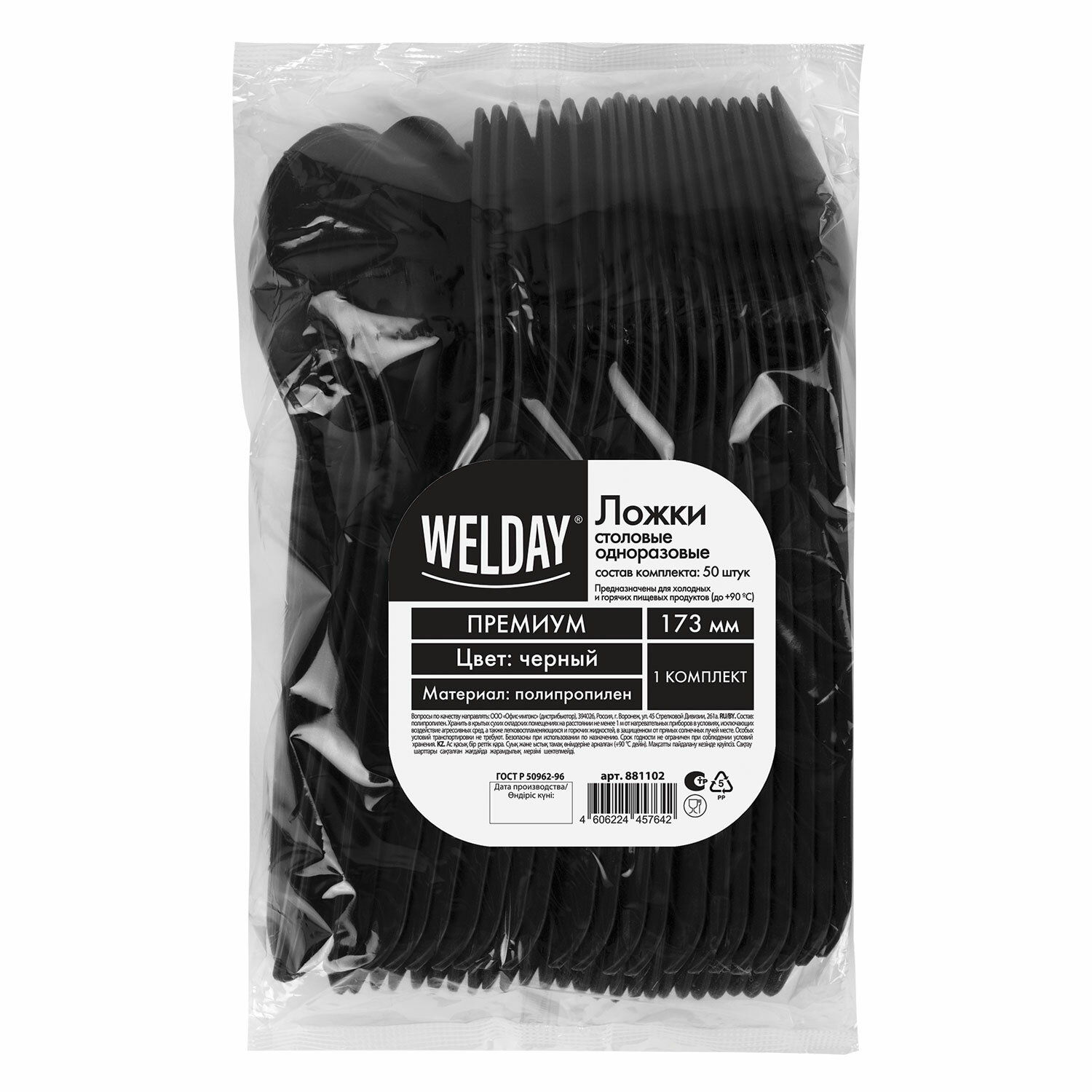 - Ложка столовая одноразовая полипропиленовая 173 мм черная, КОМПЛЕКТ 50 шт., ПРЕМИУМ, WELDAY, 881102