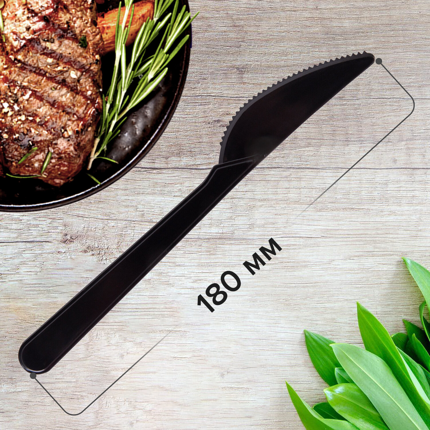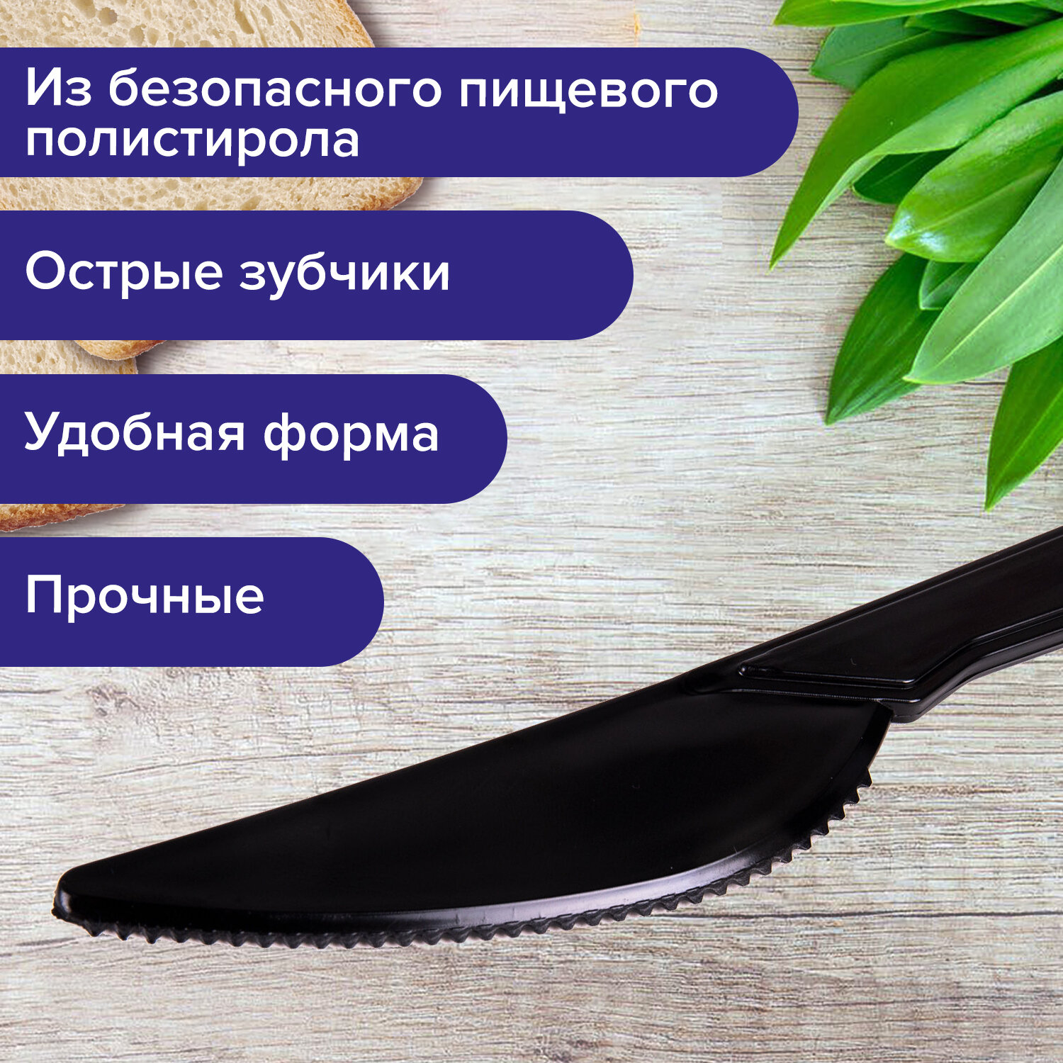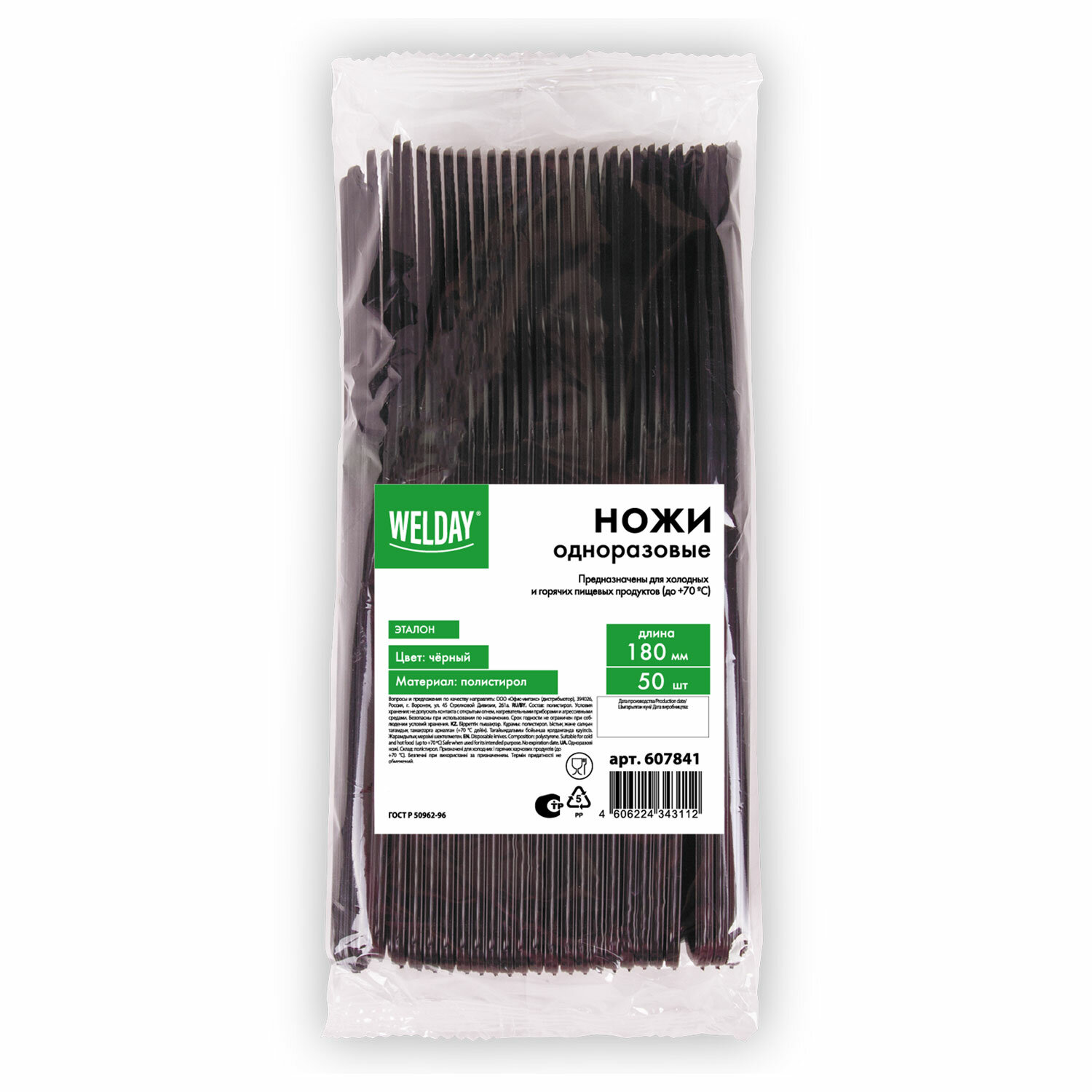 Приборы изготовлены из высококачественного пищевого полистирола черного цвета, поэтому они легкие и безопасные в использовании. Подойдут как для холодных, так и для горячих (до +70°С) блюд. Длина — 180 мм. В упаковке 50 штук. Нож одноразовый пластиковый 180 мм, черный, КОМПЛЕКТ 50 шт., ЭТАЛОН, WELDAY, 607841