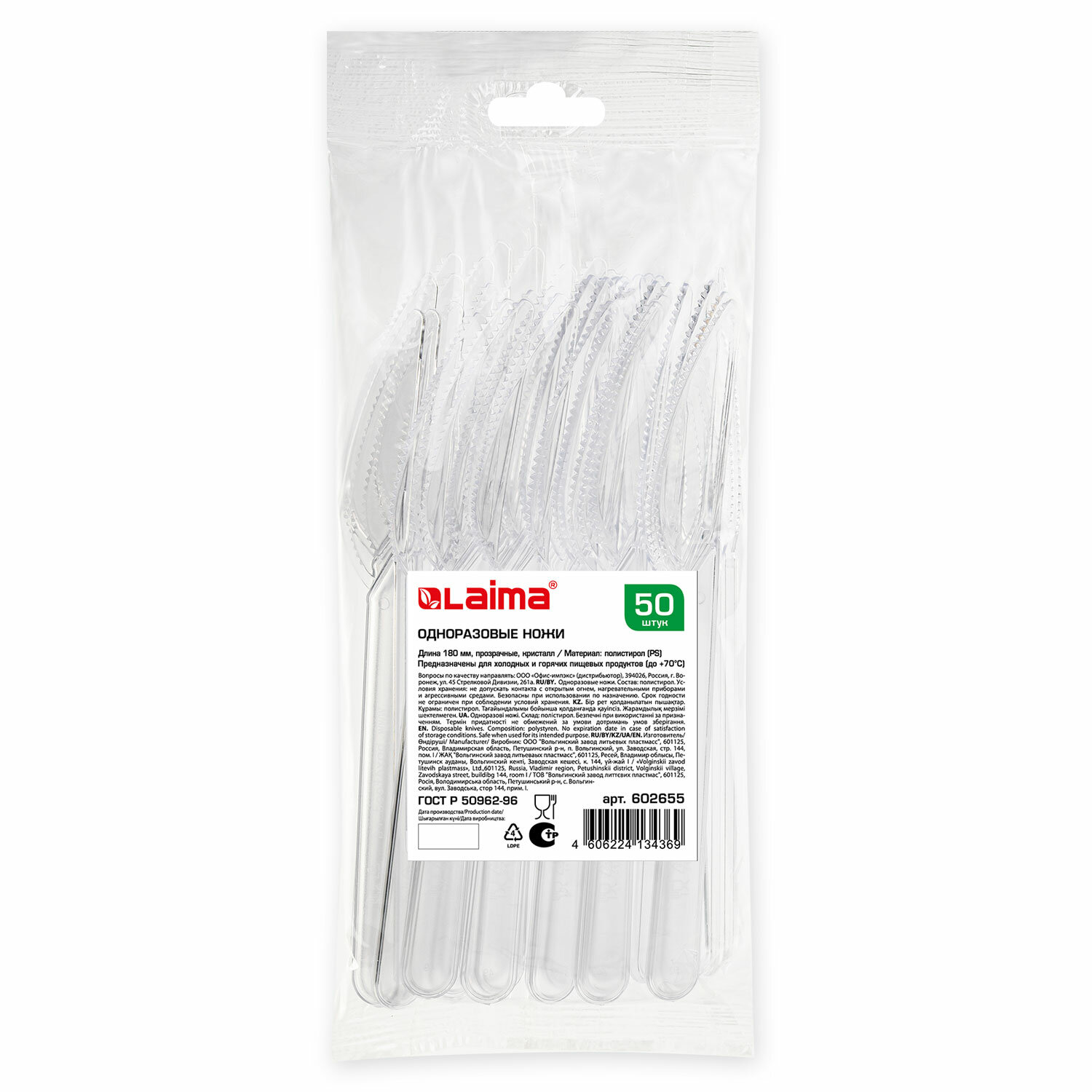 - Нож одноразовый пластиковый 180 мм, прозрачный, КОМПЛЕКТ 48/50 шт., КРИСТАЛЛ, LAIMA, 602655