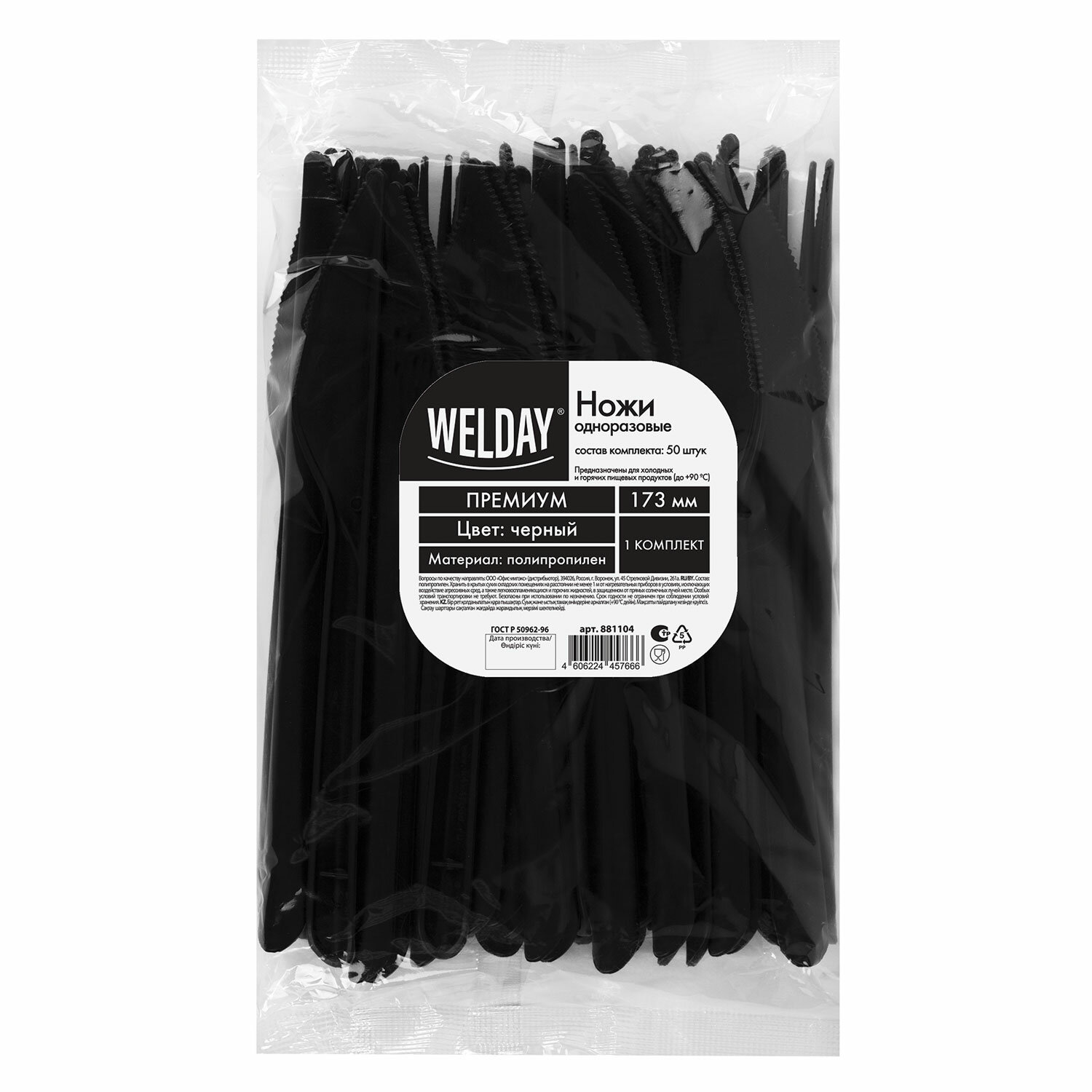 - Нож одноразовый полипропиленовый 173 мм черный, КОМПЛЕКТ 50 шт., ПРЕМИУМ, WELDAY, 881104