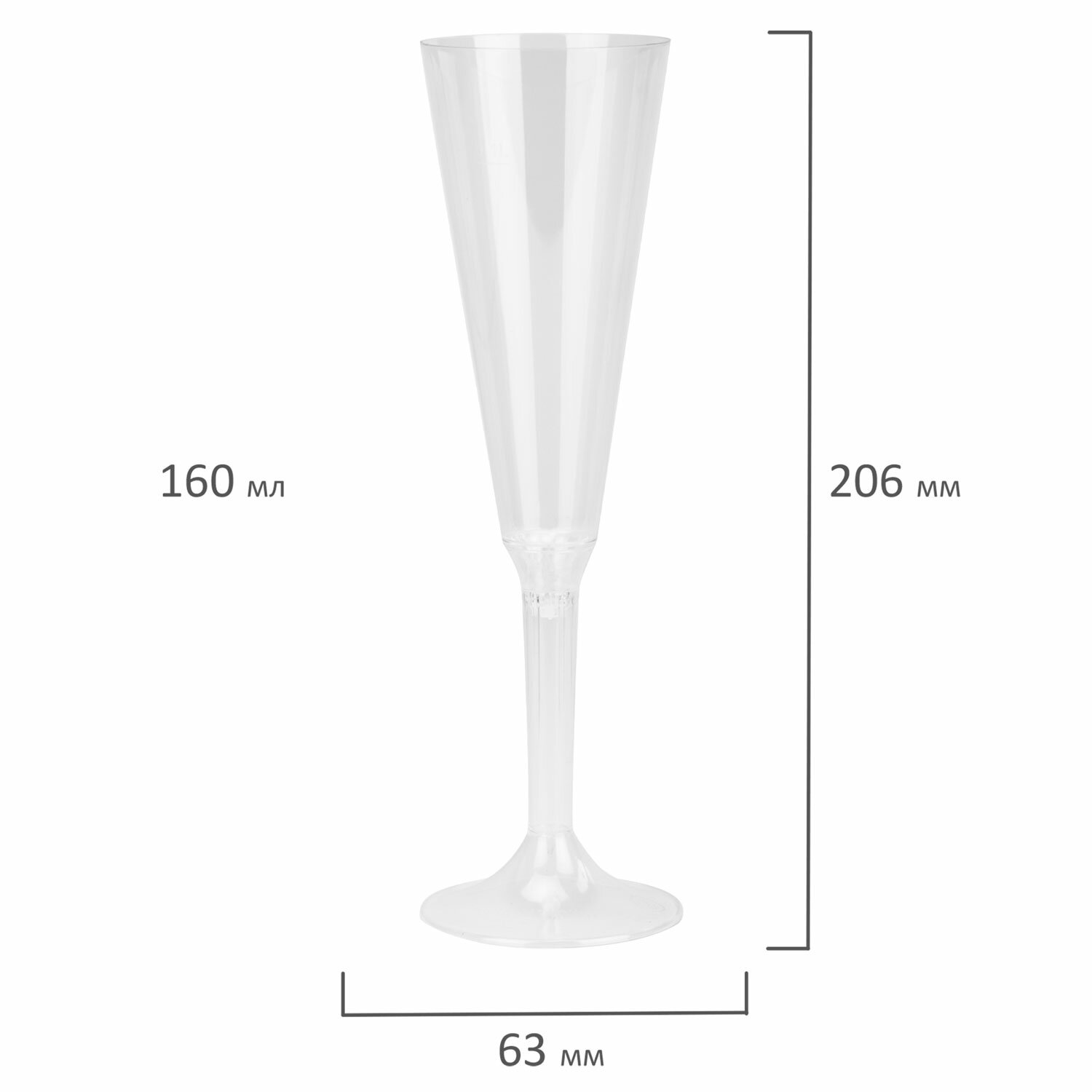 - Фужер одноразовый 160 мл для шампанского пластиковый, прозрачная высокая ножка, "Флюте", 1015