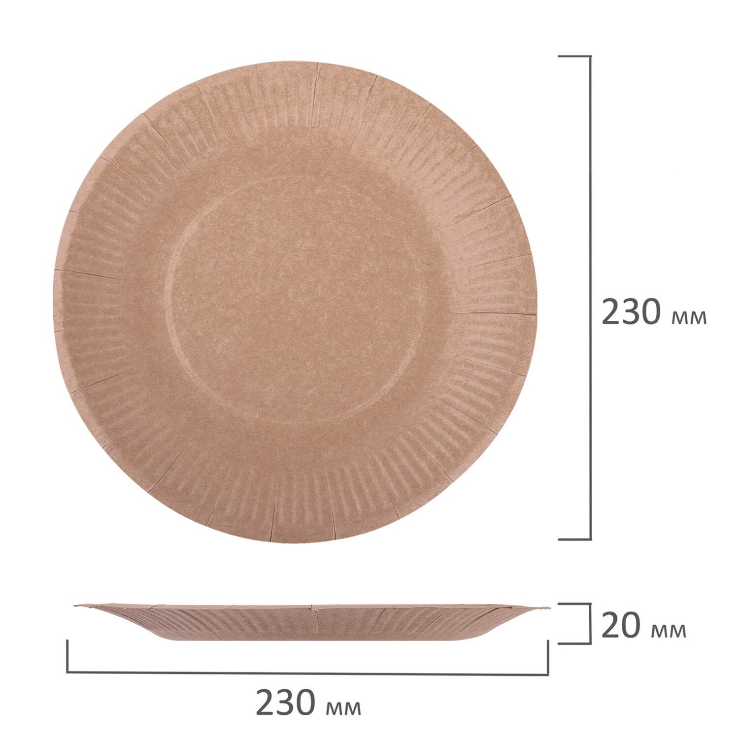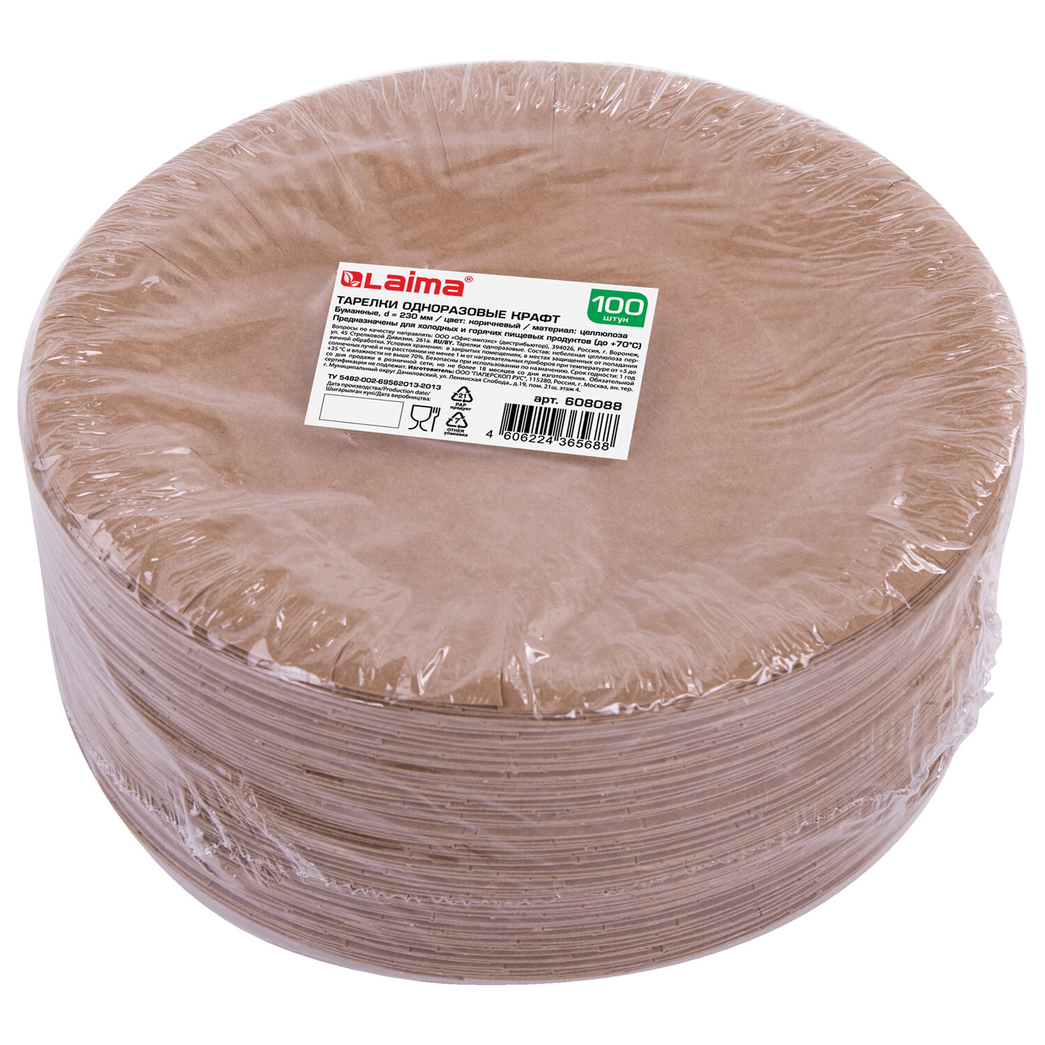 - Тарелка одноразовая крафт бумажная 230 мм, КОМПЛЕКТ 100 штук, LAIMA ECO CRAFT, 608088