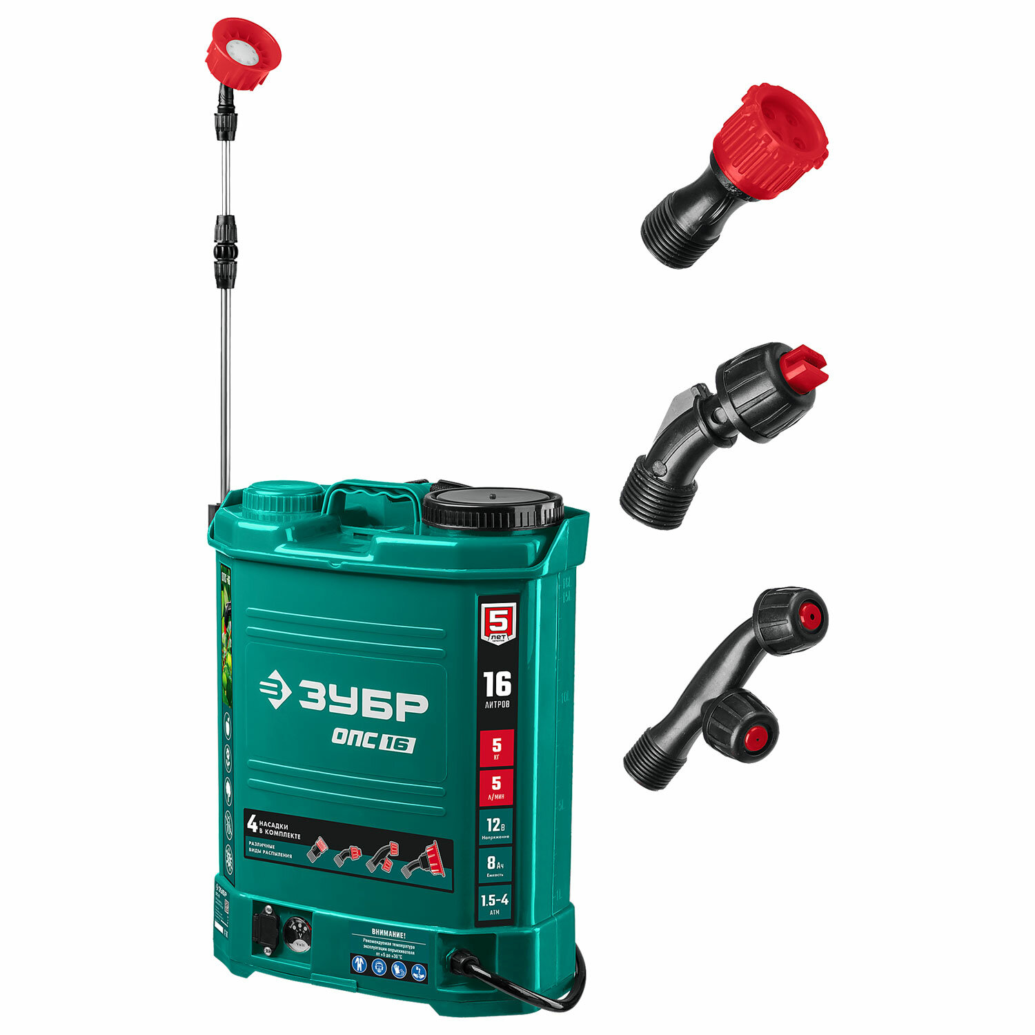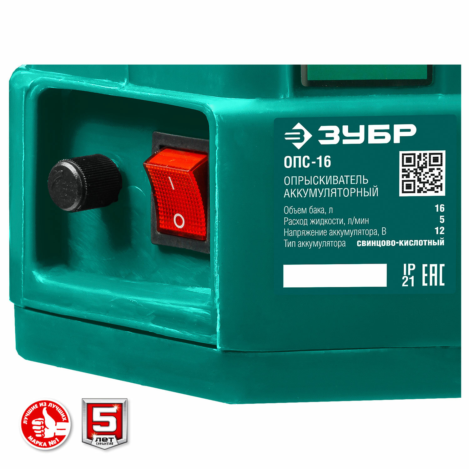 - Опрыскиватель аккумуляторный ЗУБР ОПС-16, 16 л бак, 5 л/мин, 12 В, 8 А*ч, ОПС-16