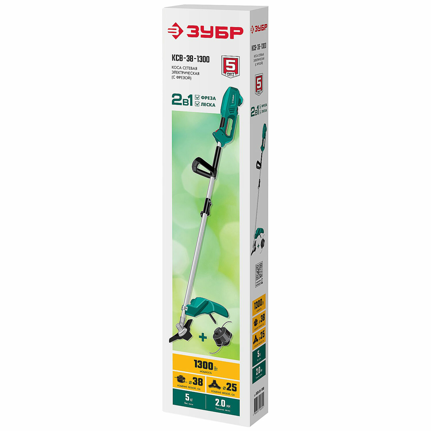 - Триммер электрический ЗУБР КСВ-38-1300, 1300 Вт, 7000 об/мин, ширина скашивания 38 см, КСВ-38-1300