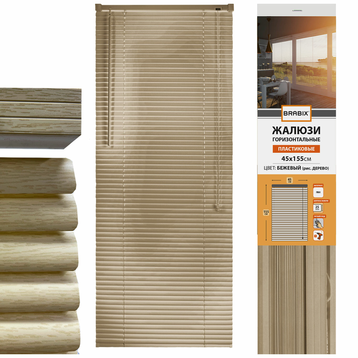 - Жалюзи горизонтальные BRABIX 45х155 см, ПЛАСТИК, под дерево, бежевый, 608617