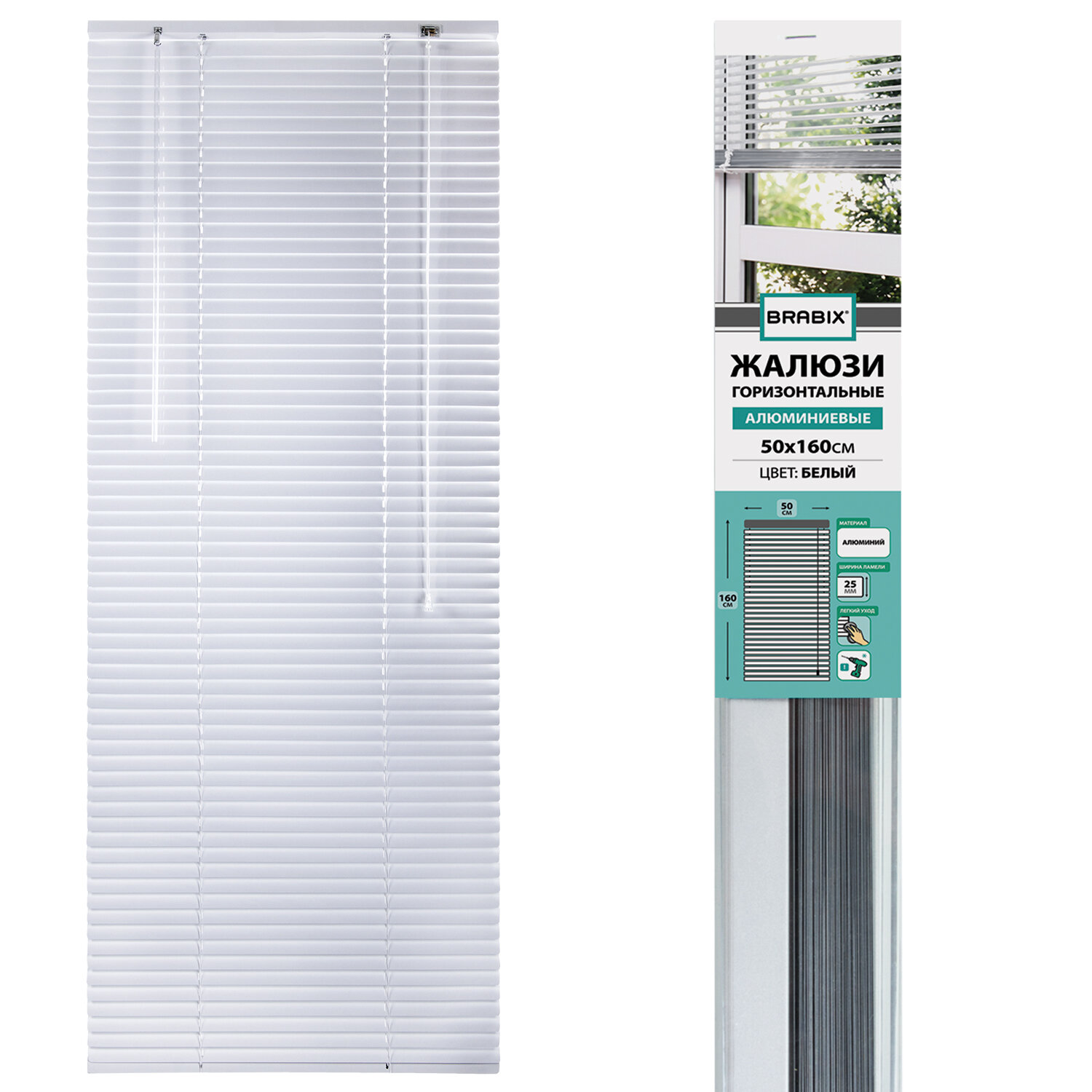 - Жалюзи горизонтальные BRABIX 50х160 см, АЛЮМИНИЙ, цвет белый, 606032