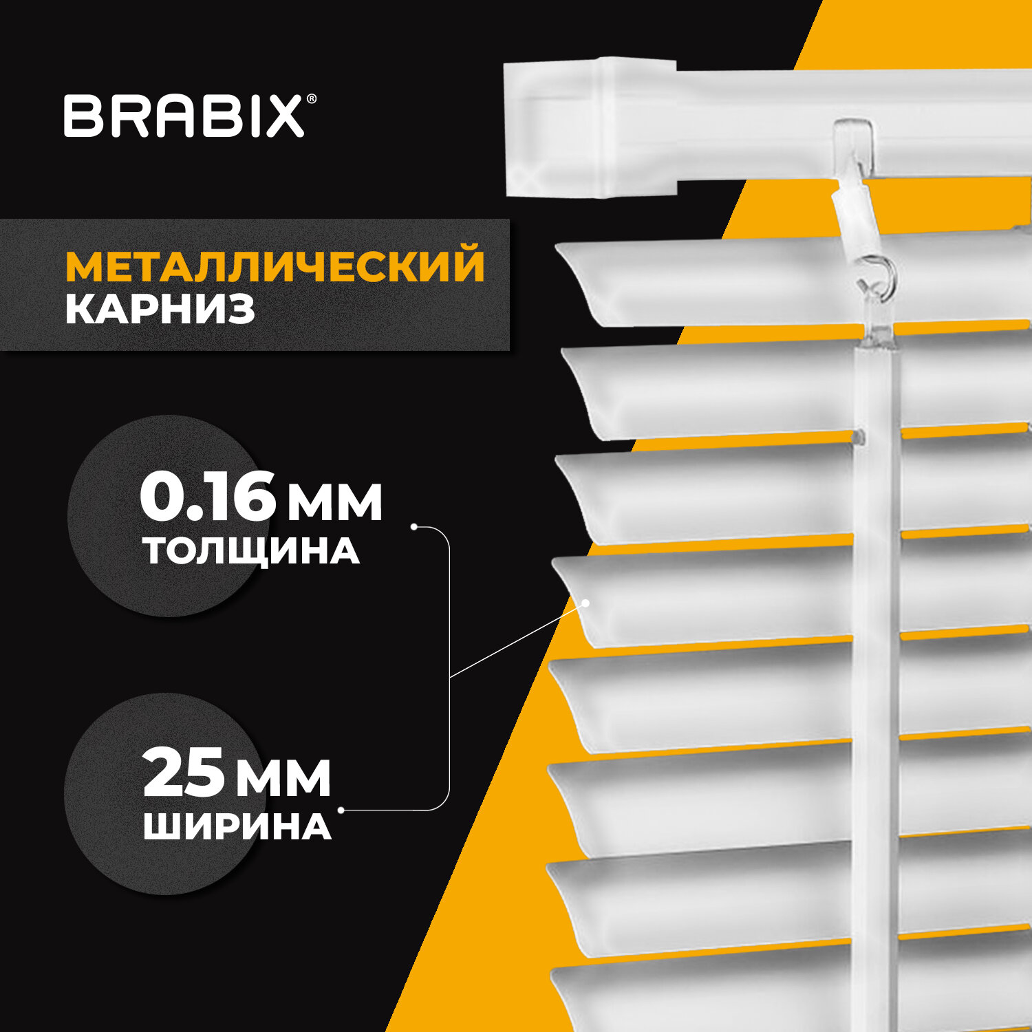 Размер – 55х160 см. Ширина ламелей – 25 мм. Жалюзи горизонтальные BRABIX 55х160 см, АЛЮМИНИЙ, цвет белый, 608624