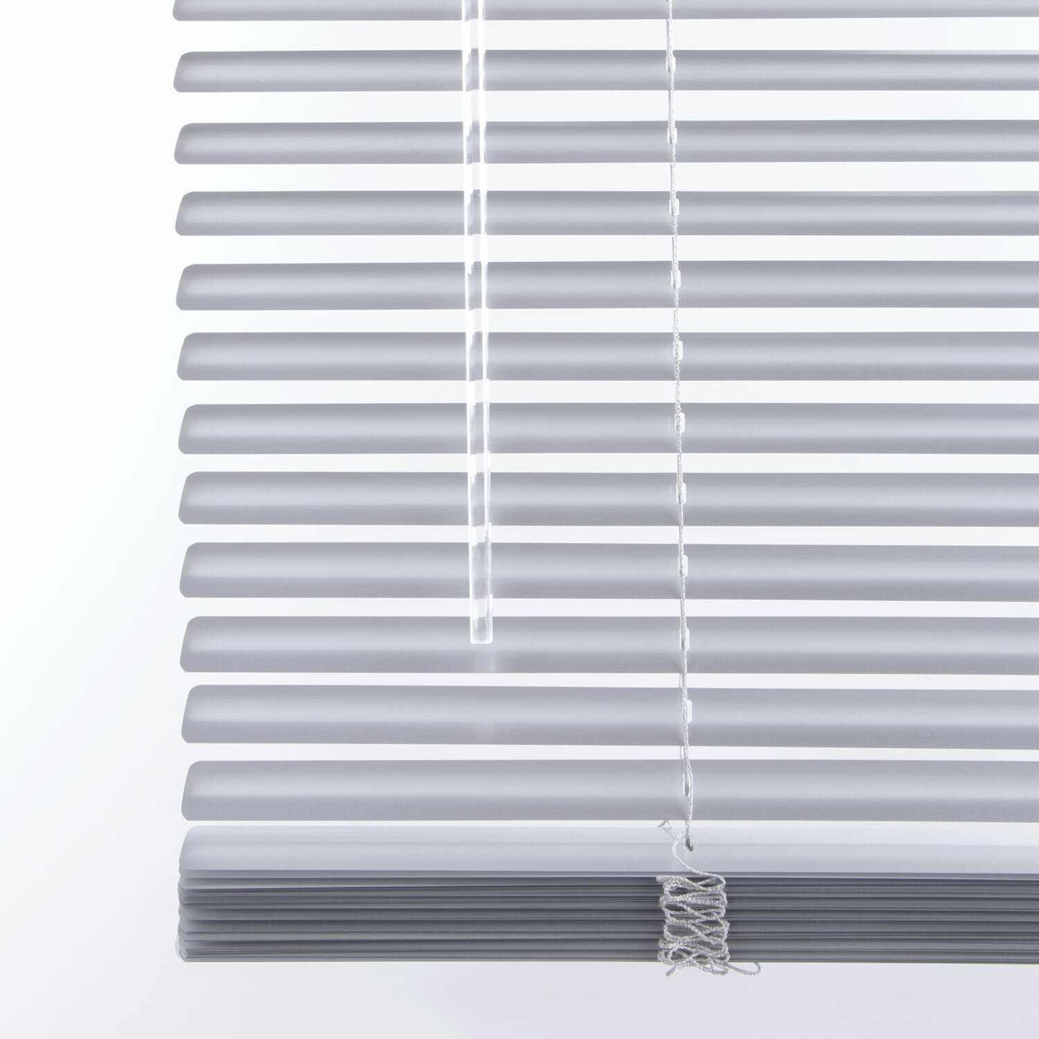 Жалюзи выполнены в серебристом цвете.