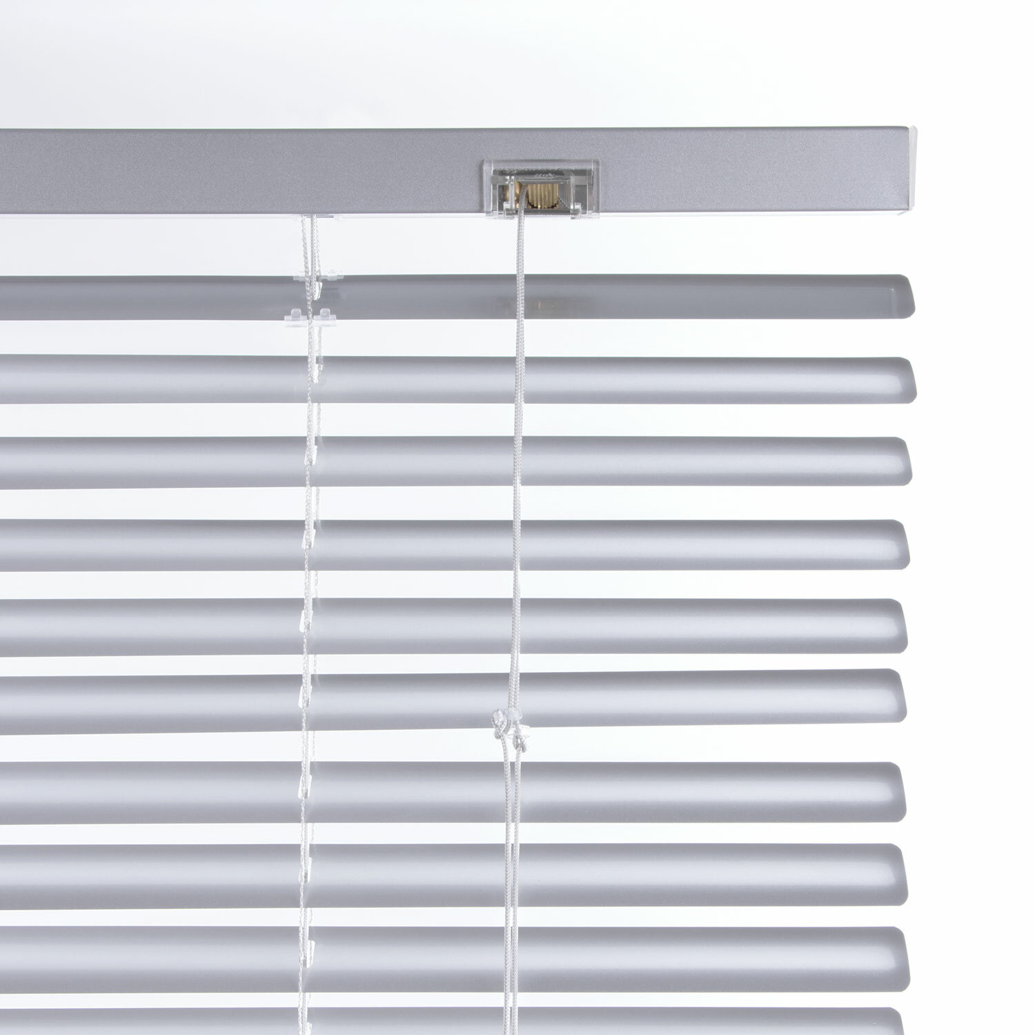 Жалюзи выполнены в серебристом цвете.