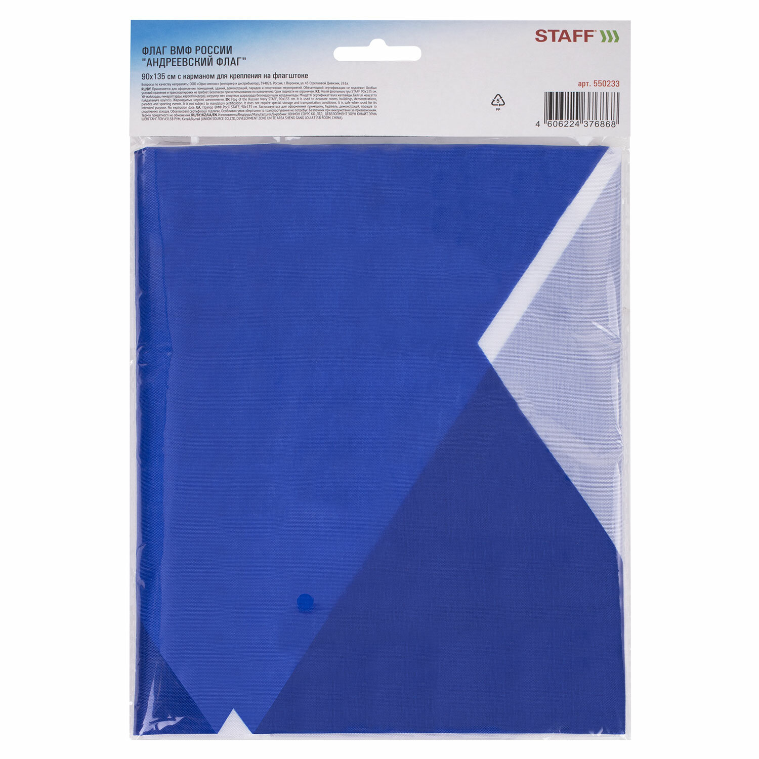 - Флаг ВМФ России "Андреевский флаг" 90х135 см, полиэстер, STAFF, 550233