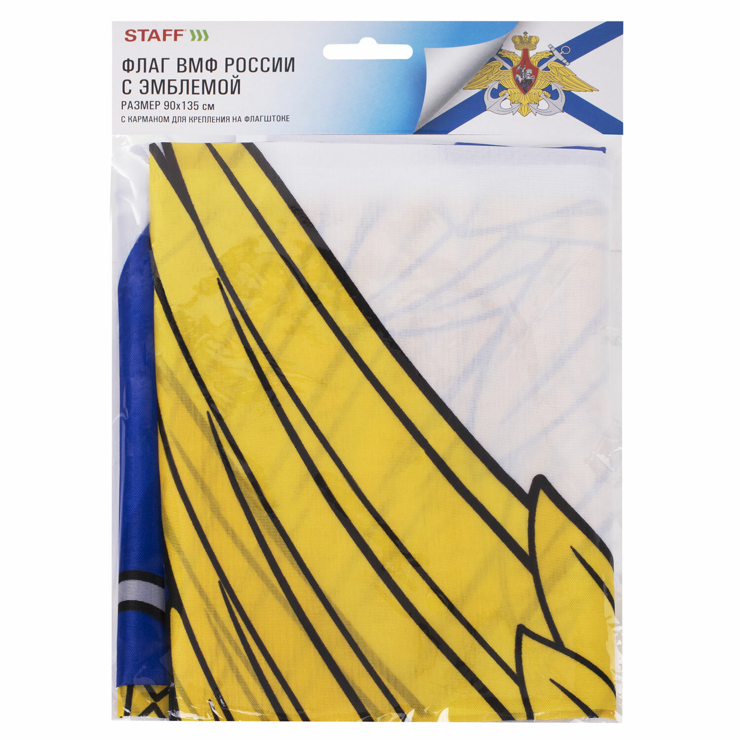 - Флаг ВМФ России "Андреевский флаг с эмблемой" 90х135 см, полиэстер, STAFF, 550234