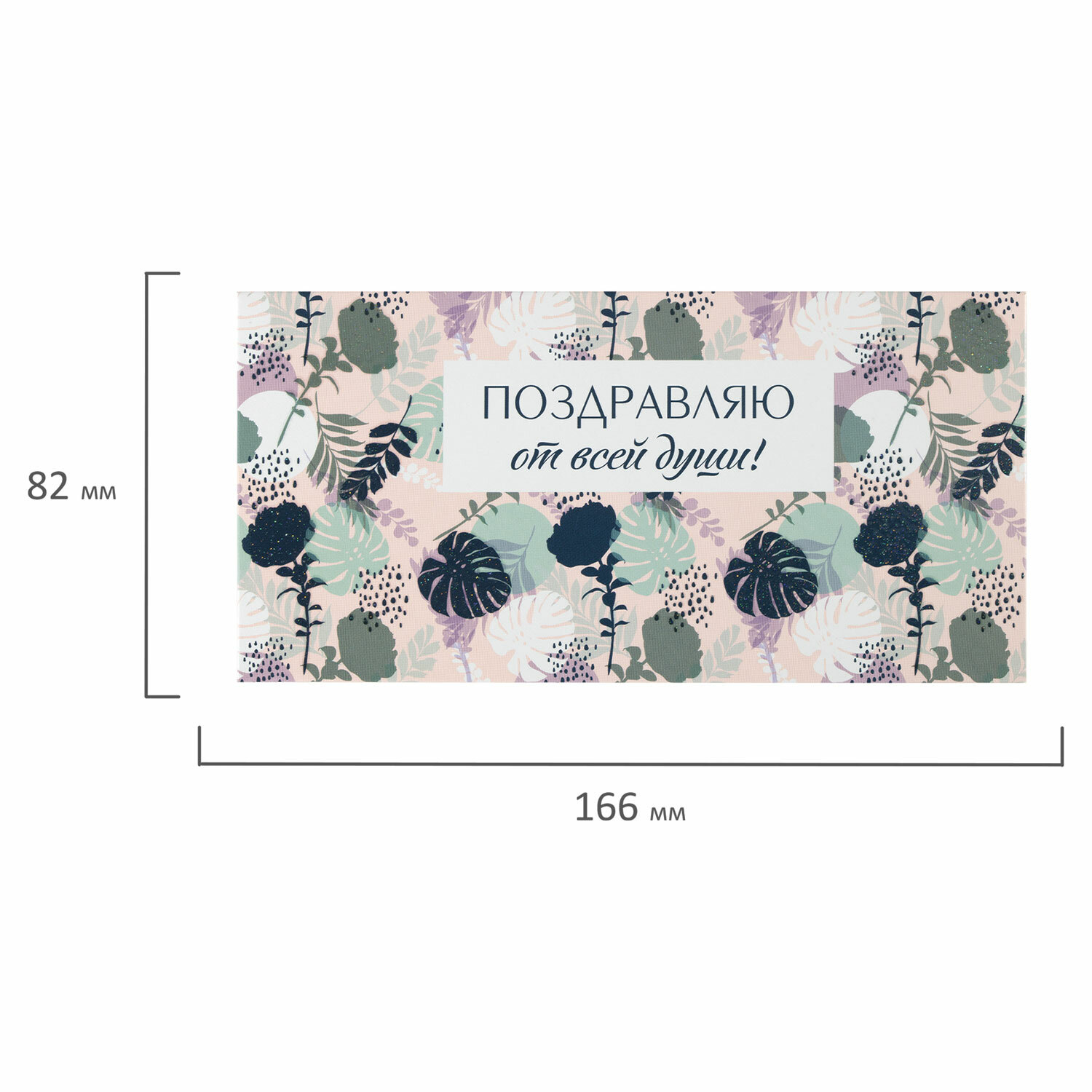 - Конверт для денег "ПОЗДРАВЛЯЮ ОТ ВСЕЙ ДУШИ!", Цветы, 166х82 мм, блестки, ЗОЛОТАЯ СКАЗКА, 113753