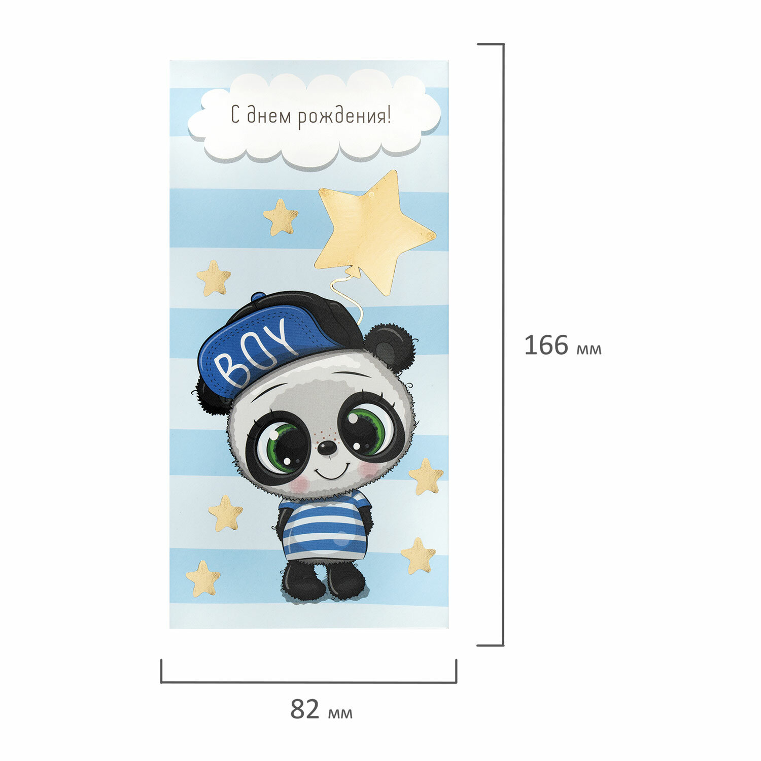 Конверт для денег "С ДНЁМ РОЖДЕНИЯ!", Панда, голубой, 166х82 мм, фольга, ЗОЛОТАЯ СКАЗКА, 113763