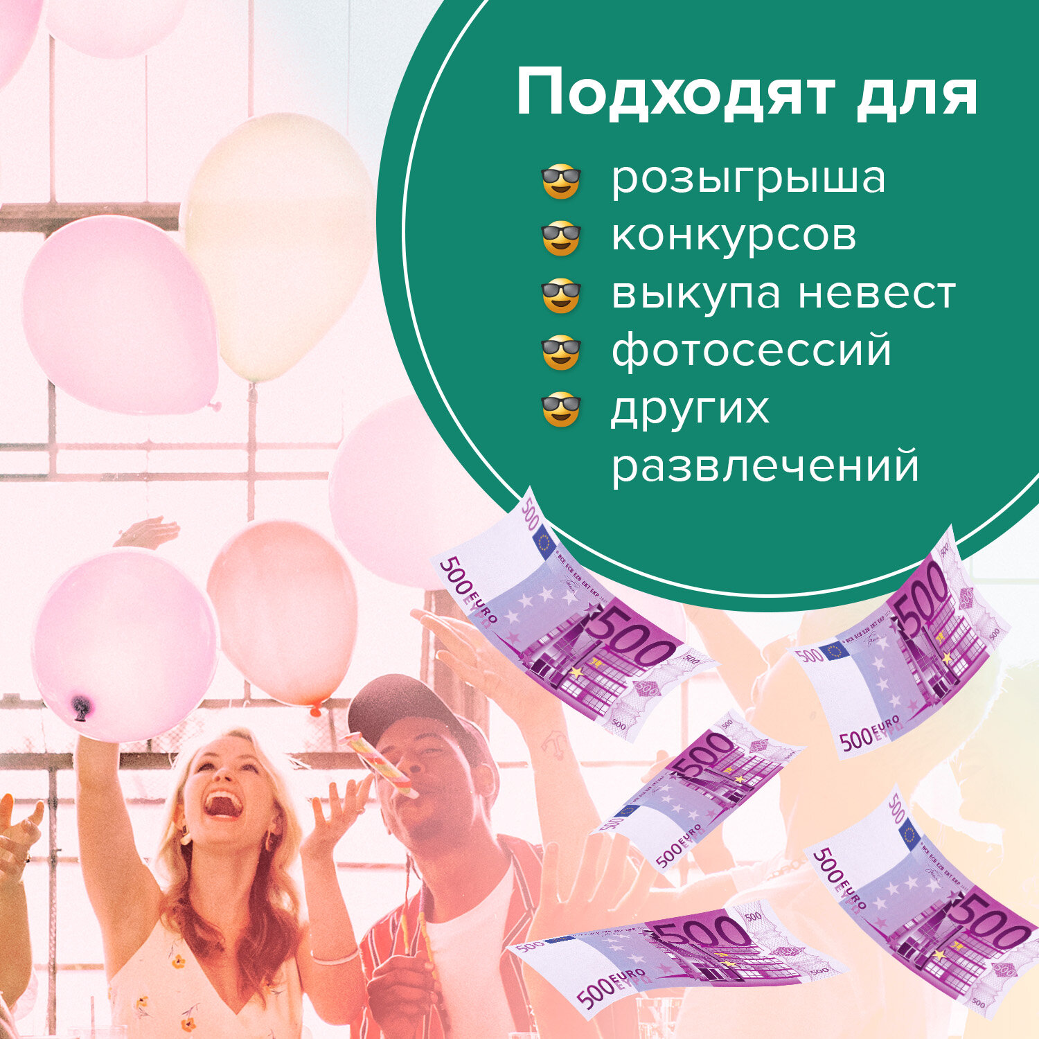 - Деньги шуточные "500 евро", упаковка с европодвесом, AD0000064